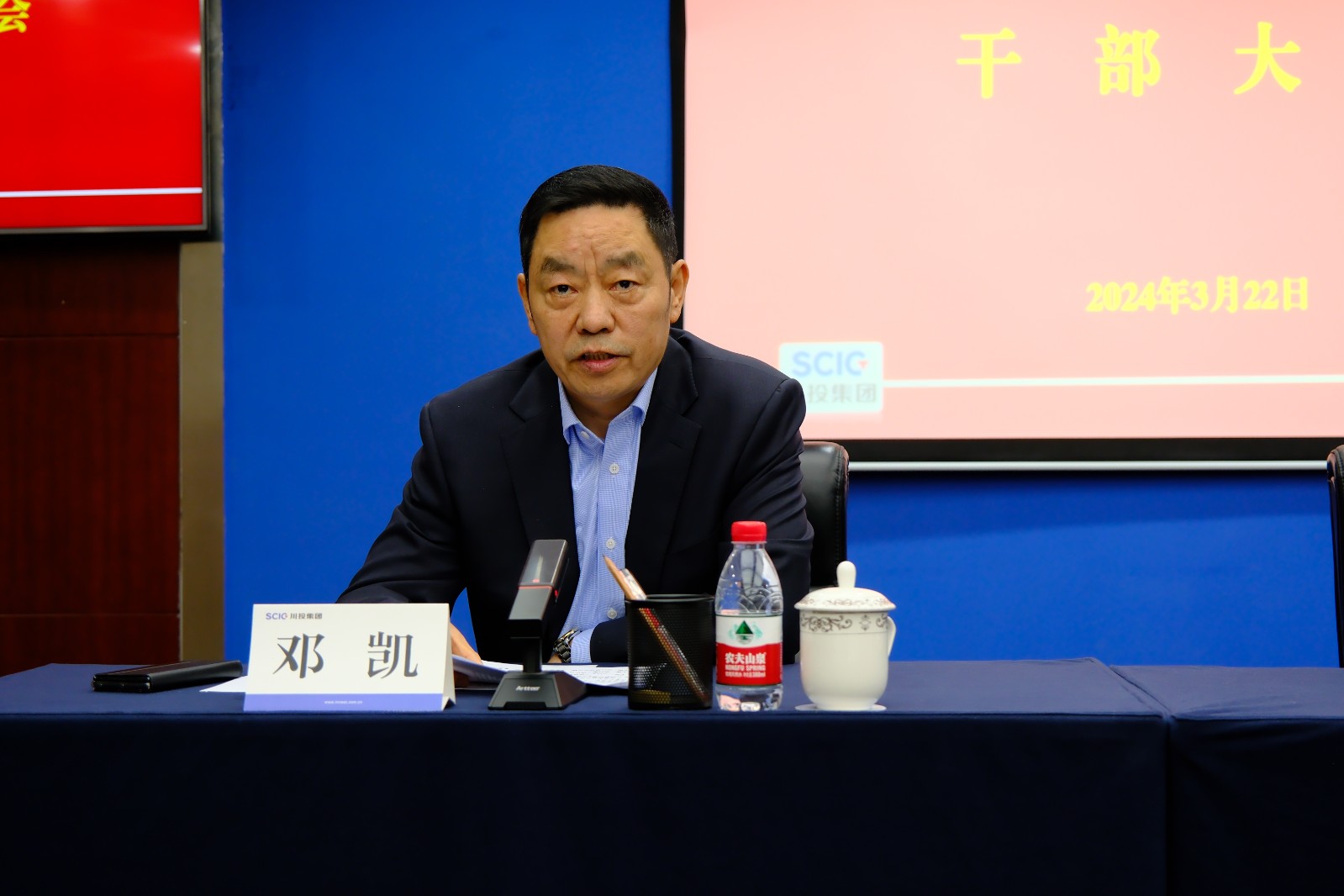 3月22日上午,川投集團召開干部大會。黨委書記、董事長吳曉曦出席會議并講話,黨委副書記、副董事長、總經(jīng)理李文志宣讀省委、省政府關于肖長青、朱莉同志的任職通知,黨委副書記、董事鄧凱主持會議,在家的集團公司領導班子成員出席會議。