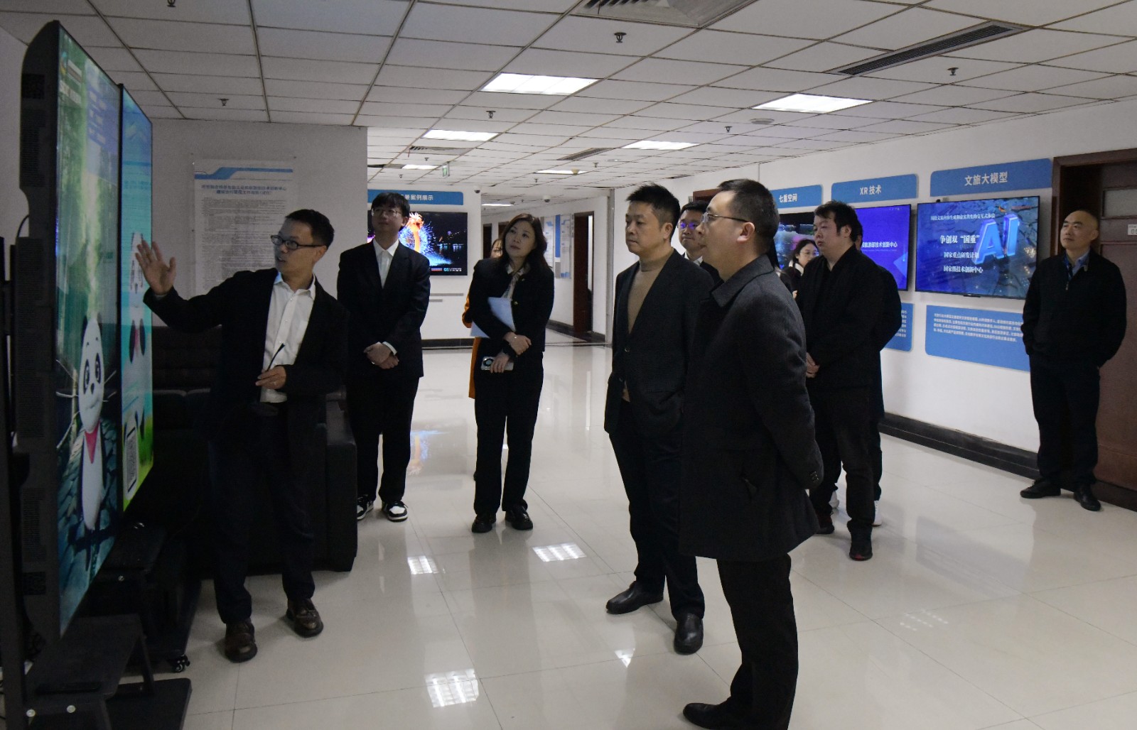 調(diào)研組一行參觀了由虛擬現(xiàn)實前沿技術(shù)構(gòu)建的大型沉浸式互動體驗館——“七重空間·大國重器”,實地查看視覺融合場景體驗文化和旅游部技術(shù)創(chuàng)新中心、川投數(shù)科AI文旅大模型建設(shè)情況,并圍繞“新時代數(shù)字紀(jì)檢探索”等主題進行深入交流。