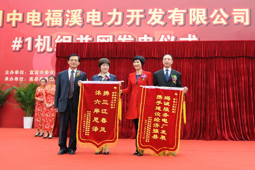 慶典儀式上,楊冬生、李小琳、劉捷分別代表宜賓市、中電投和四川省委、省政府作了重要講話;中電國際總經(jīng)理谷大可宣讀了關(guān)于福溪電廠1號(hào)機(jī)組參建單位的表彰文件;中電國際、川投集團(tuán)向宜賓市委、市政府,高縣縣委、縣政府贈(zèng)送了錦旗;李小琳、劉捷、楊冬生共同為李鵬同志親筆題寫的“四川中電福溪電力開發(fā)有限公司”廠名石揭牌。