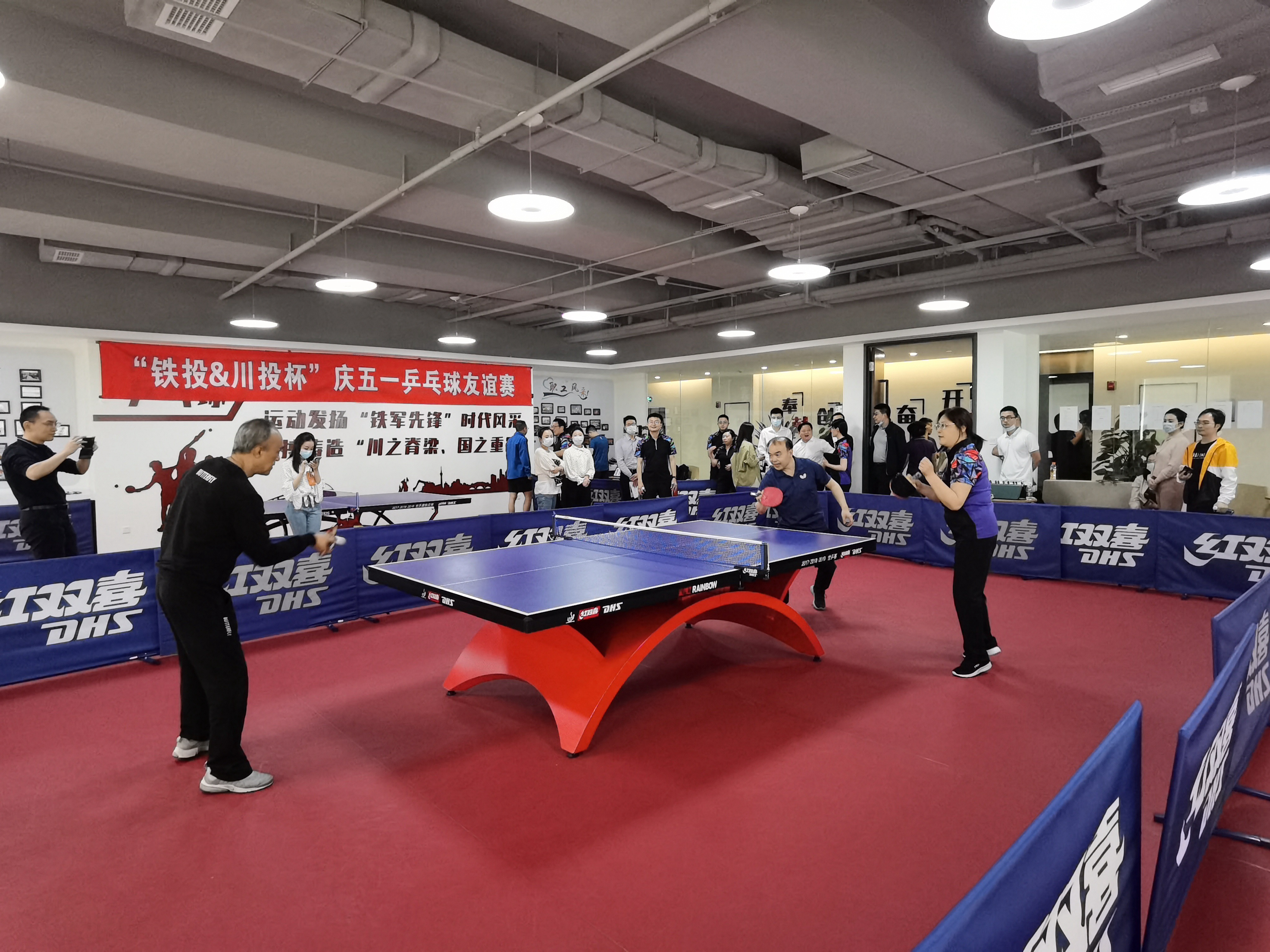 在奪取抗擊新冠肺炎疫情復(fù)工復(fù)產(chǎn)全面勝利的關(guān)鍵階段和“五一國(guó)際勞動(dòng)節(jié)”即將來臨之際,為加強(qiáng)兄弟企業(yè)文化交流,豐富干部員工業(yè)余生活,4月29日,川投集團(tuán)機(jī)關(guān)工會(huì)、鐵投集團(tuán)機(jī)關(guān)工會(huì)聯(lián)合舉辦“川投&鐵投杯”慶五一乒乓球友誼賽。川投集團(tuán)黨委委員、職工董事、工會(huì)主席率隊(duì)出征,副總經(jīng)理,黨委委員、紀(jì)委書記田雨晴,黨委委員、副總經(jīng)理羅永平出席活動(dòng)。