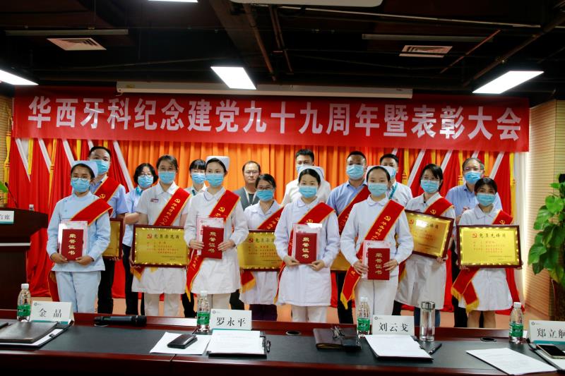 為慶祝中國共產(chǎn)黨成立99周年,深入貫徹落實川投集團黨委關(guān)于開展《中國共產(chǎn)黨國有企業(yè)基層組織工作條例(試行)》試點工作和“雙爭雙創(chuàng)”活動的相關(guān)要求,扎實推進華西牙科試點工作和創(chuàng)建“五心”黨建品牌,6月23日,華西牙科召開紀(jì)念建黨九十九周年暨表彰大會,川投集團黨委委員、副總經(jīng)理、華西牙科黨委書記、董事長羅永平,華西牙科黨委副書記、紀(jì)委書記金晶,副總經(jīng)理劉云戈,黨委委員、財務(wù)總監(jiān)王海帆,專家委副主任鄭立舸教授,等共計50余人參加會議。大會由黨委副書記、紀(jì)委書記金晶主持。