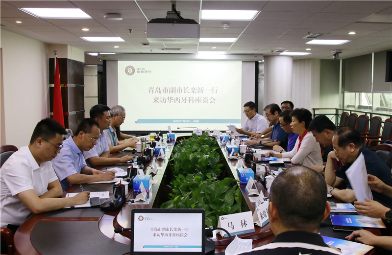 青島市衛(wèi)生健康委員會黨組書記、主任隋振華,青島大學(xué)附屬醫(yī)院黨委書記王新生,青島市市立醫(yī)院院長管軍,青島市中心醫(yī)院院長蘭克濤;華西牙科副總經(jīng)理羅云教授及相關(guān)人員參加會談。