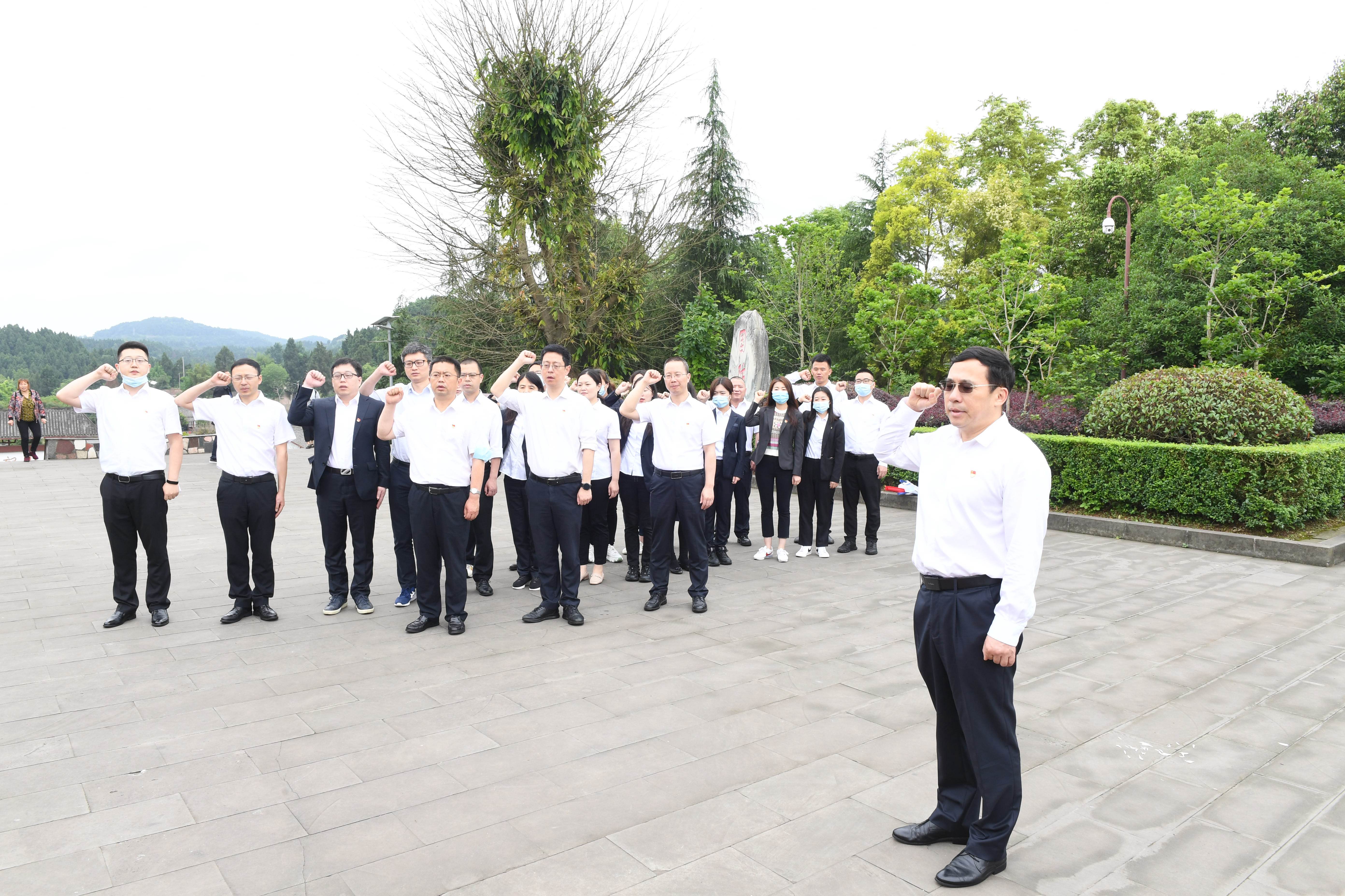 在陳毅元帥雕像前,王懷林同志帶領(lǐng)全體黨員面向黨旗,緊握右拳,鏗鏘有力、莊嚴(yán)神圣地重溫入黨誓詞,追憶了入黨時對黨和人民許下的莊嚴(yán)承諾。