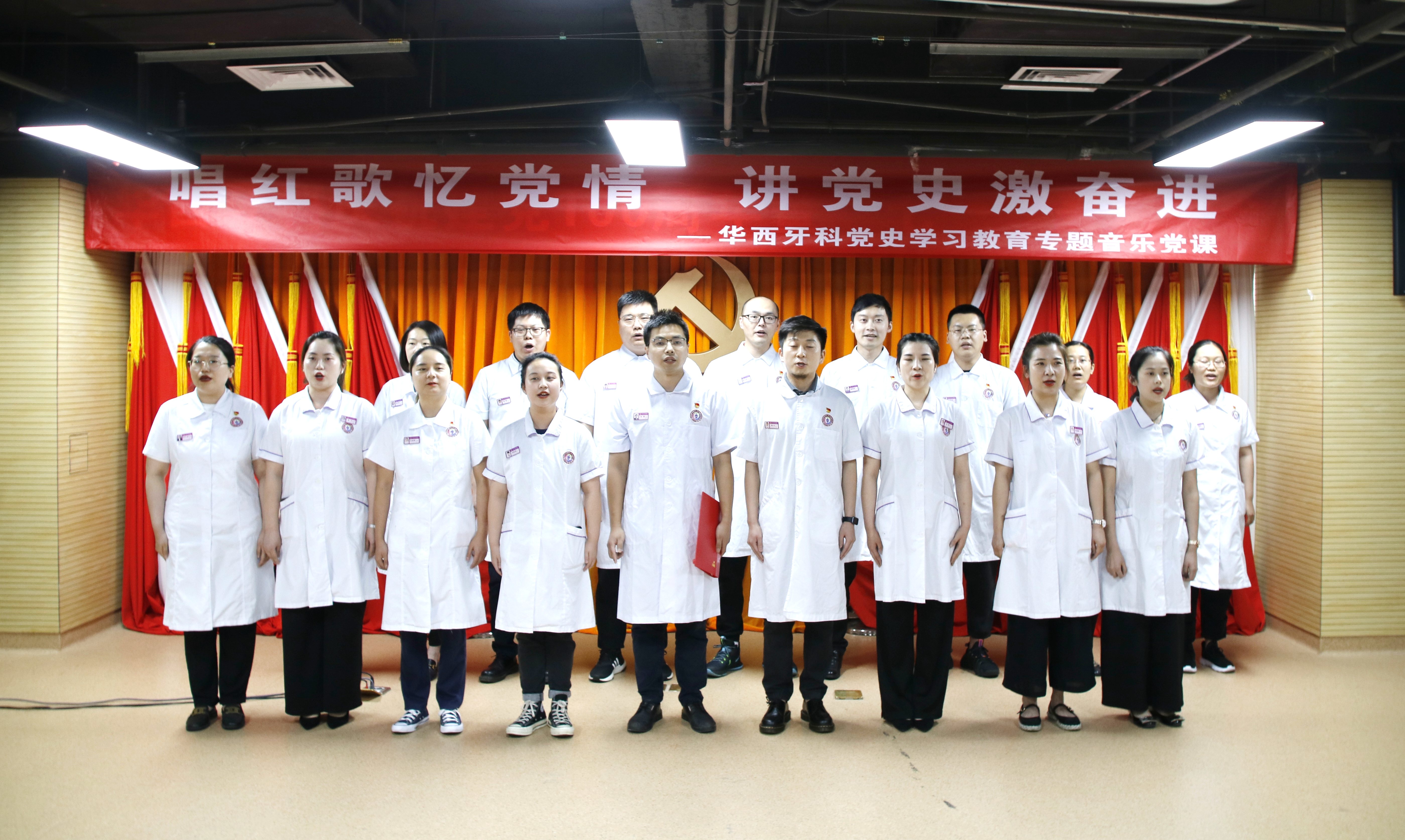 在“唱紅歌憶黨情 講黨史激奮進”黨史學(xué)習(xí)教育專題音樂黨課中,華西牙科各級黨組織以黨史學(xué)習(xí)為主線、以紅色歌曲為載體,通過“講述歷史+歌曲演唱”的方式,再現(xiàn)和回顧了中國共產(chǎn)黨走過的光輝歷程和激昂歲月。