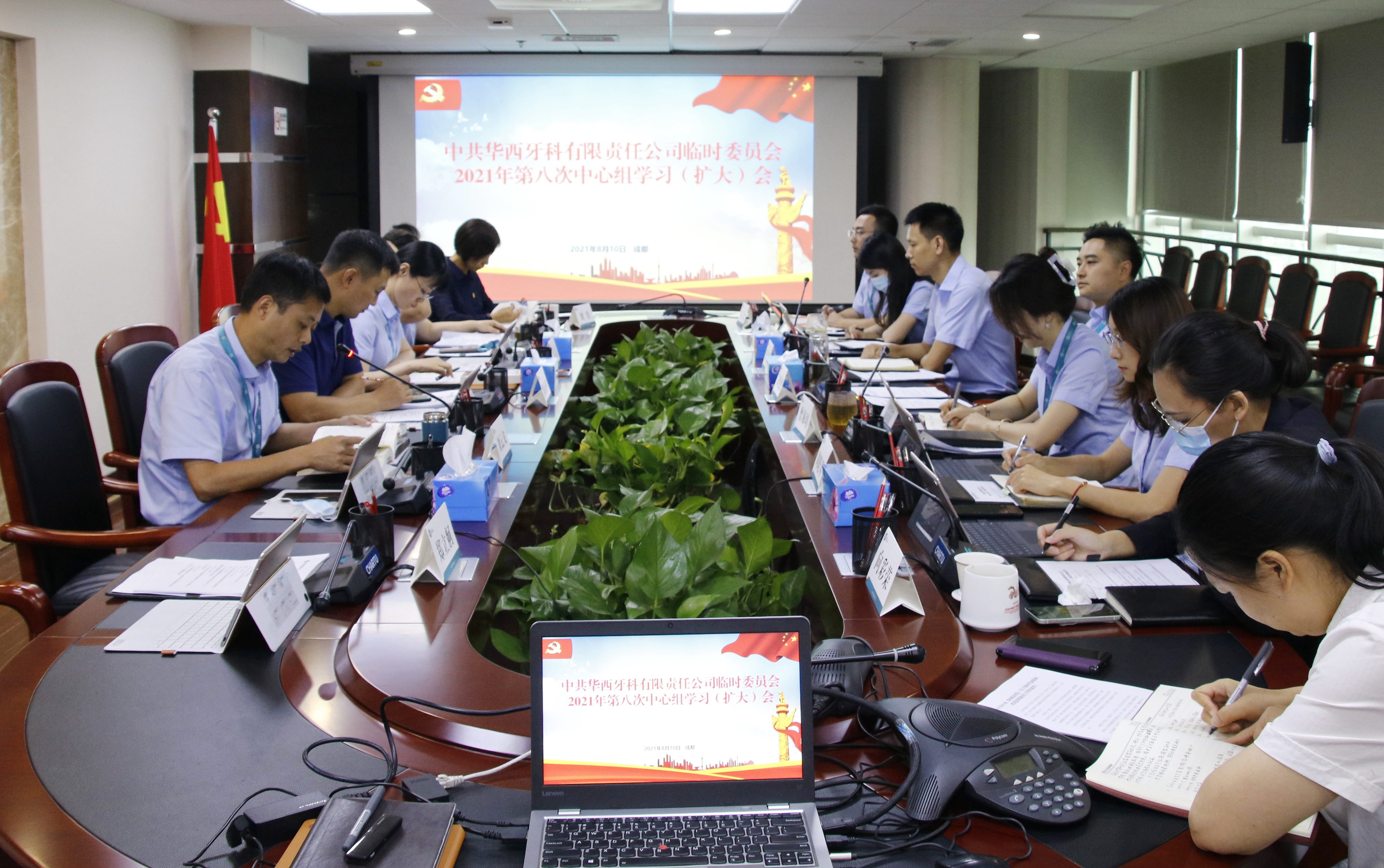 8月10日,華西牙科臨時黨委召開2021年第八次中心組學(xué)習(xí)(擴(kuò)大)會,集團(tuán)公司黨委委員、副總經(jīng)理,華西牙科黨委書記、董事長羅永平主持會議。