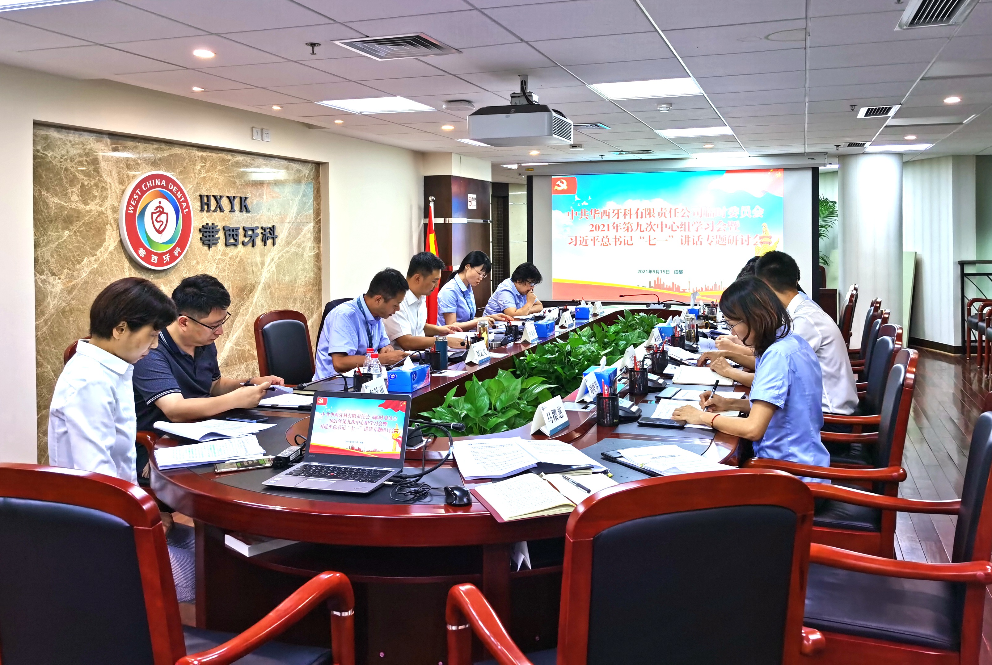 9月15日,華西牙科臨時黨委召開2021年第九次中心組學習會,專題學習研討習近平總書記“七一”重要講話精神。集團公司黨委委員、副總經(jīng)理,華西牙科黨委書記、董事長羅永平主持會議。