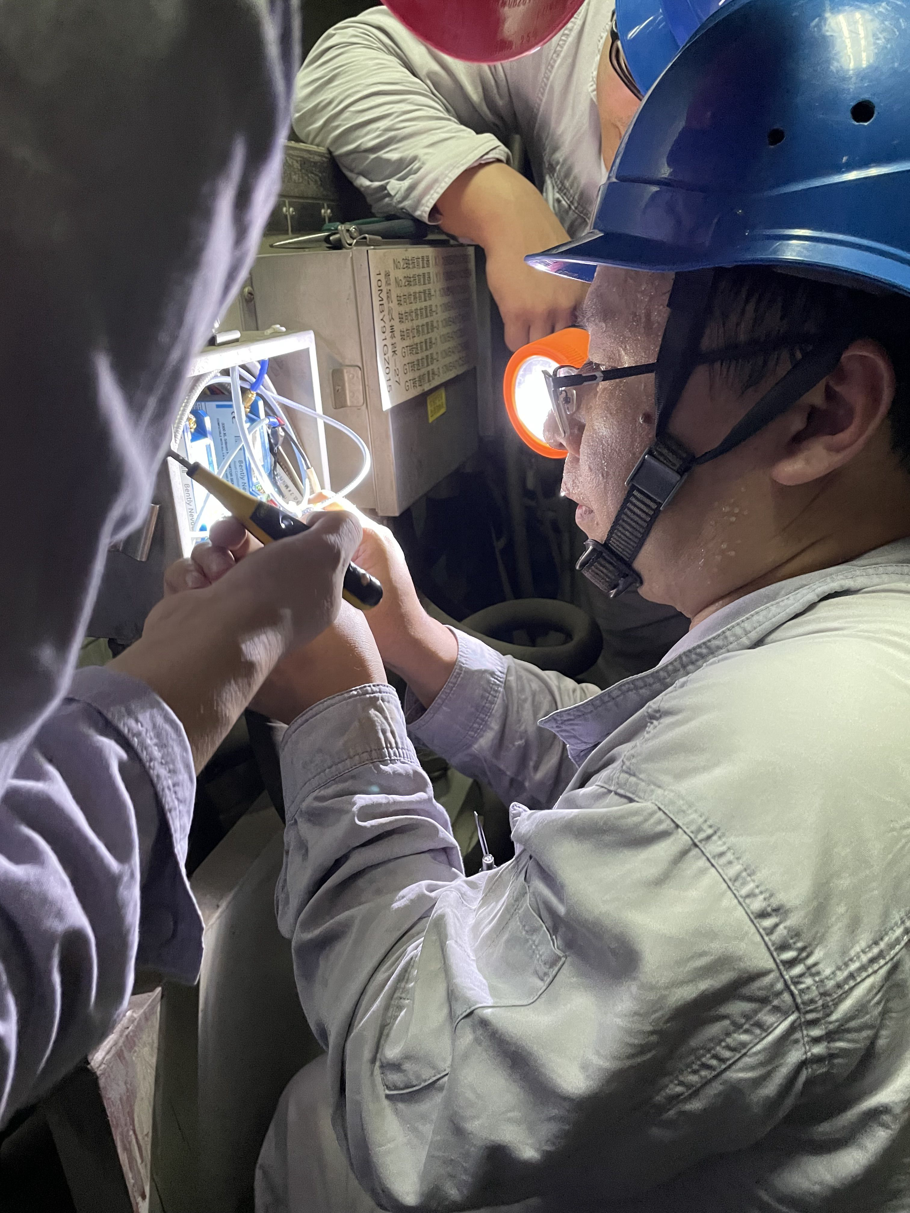 此時剛停運(yùn)的燃機(jī)罩殼內(nèi)溫度高達(dá)60℃,如同一個巨大的“汗蒸房”。為了盡快搶修,薛國和值班人員祝青海、葉亭壓根兒沒時間等熱氣散去就開始了檢查。