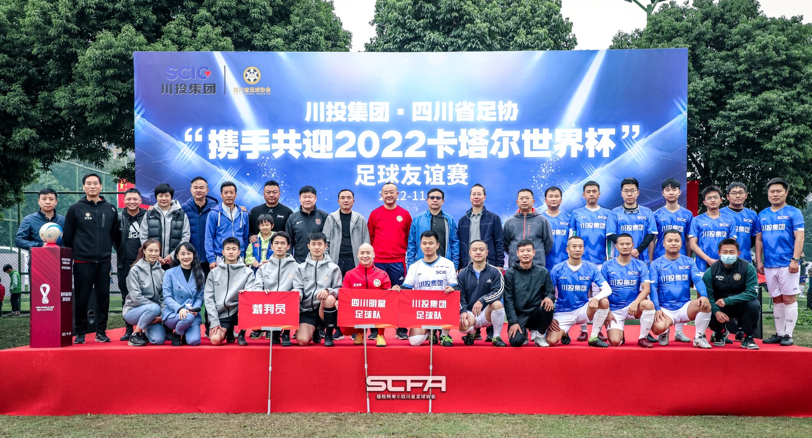 11月20日下午,川投集團(tuán)·四川省足協(xié)“攜手共迎2022卡塔爾世界杯”足球友誼賽在成都謝菲聯(lián)足球基地舉行。集團(tuán)公司黨委委員、副總經(jīng)理王懷林和四川省足球協(xié)會(huì)常務(wù)副主席兼秘書長胡鵬春出席活動(dòng)。
