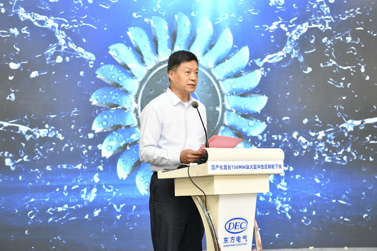 東方電氣集團黨組書記、董事長俞培根代表東方電氣集團向出席活動的領導專家表示熱烈歡迎,向參與150兆瓦級沖擊式轉(zhuǎn)輪國產(chǎn)化研制的全體人員表示熱烈祝賀,向項目重要合作方(川投集團)表示衷心感謝。他表示,本次完工下線的國產(chǎn)化首臺150兆瓦級沖擊式轉(zhuǎn)輪是東方電氣集團深入踐行國家“雙碳”戰(zhàn)略、瞄準國內(nèi)空白和世界一流開展關鍵核心技術攻關、推動我國能源裝備自立自強的具體實踐。