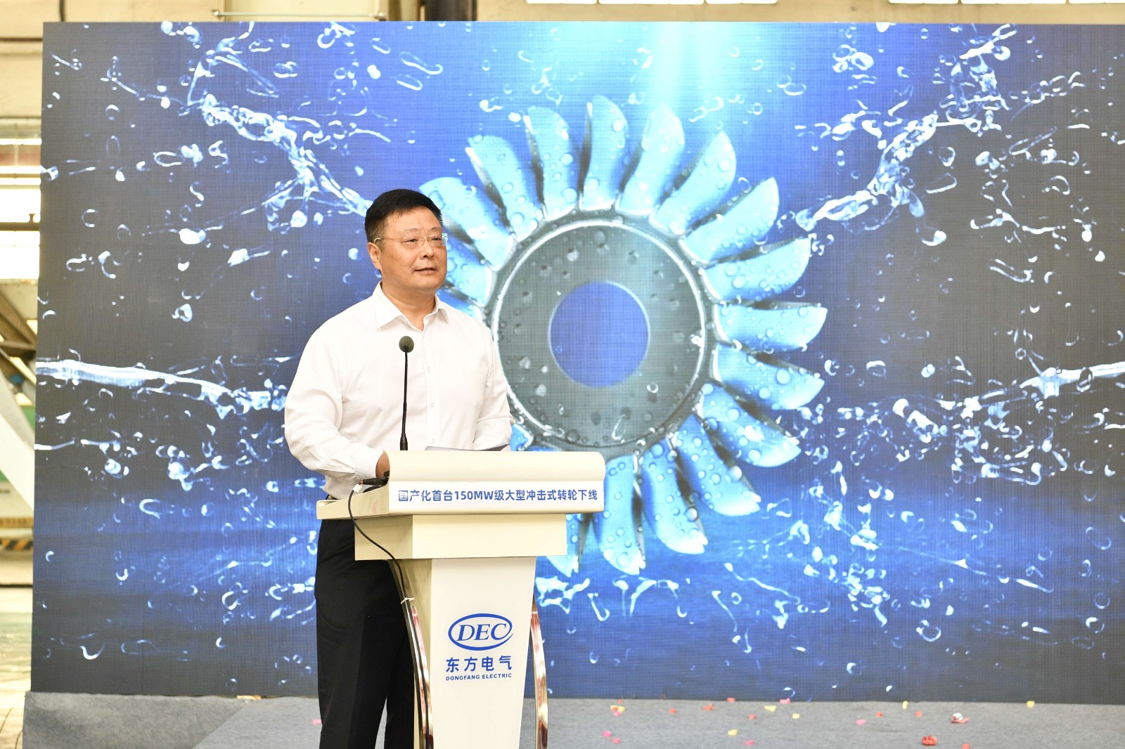 5月16日,由東方電氣和川投集團聯(lián)合研制的國內(nèi)首臺150兆瓦級大型沖擊式轉(zhuǎn)輪下線儀式在德陽東方電氣現(xiàn)場舉行。集團公司黨委副書記、副董事長、總經(jīng)理李文志出席儀式并講話。