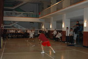 當(dāng)天上午,這場冠亞軍的強手比拼,在一號球場展開。第一局,雙方的頭號種子選手川投峨鐵的7號與巴蜀電力的6號選手碰頭,兩人一上場就展開了激烈的較量。場上巴蜀電力的6號選手先發(fā)制人,用自己嫻熟的大力扣殺和長短球的技巧以2比0戰(zhàn)勝了對手。第二局川投峨鐵又以2比0搬回一局,在第三局的比賽上雙方隊員心里都清楚,按照每一局隊員的實力情況,要奪得冠軍,成敗的關(guān)鍵就在此局。因此,雙方教練和在場的觀眾都為運動員捏著一把汗。第三局第一場比賽,開始巴蜀電力的隊員比分領(lǐng)先,川投峨鐵的隊員奮力趕超,比分很快就打到11比6,這時候在比分落后很多的情況下,巴蜀電力隊員從新調(diào)整了狀態(tài),抓住對方的薄弱點,用力打長球和扣殺,一分一分地把比分追了上去,很快雙方打到了14比14。這時候巴蜀電力抓住戰(zhàn)機一鼓作氣以21比18贏得了第一場。第二場,雙方拼的就更加厲害,打得難分難解,比分一開始就不斷打出平分9比9、10比10、11比11,就這樣雙方一直打到20比20的時候,在場的領(lǐng)隊、啦啦隊和觀眾都屏住了呼吸,一陣熱烈的掌聲后,場上馬上又非常平靜,大家都靜靜地等待著最后的結(jié)果,如果巴蜀電力能獲勝,冠軍的希望就很大,川投峨鐵代表隊的隊員心里也很清楚,她再次調(diào)整好狀態(tài),把握發(fā)球權(quán)的機會,用力地發(fā)了一個高球把對手壓到后場,在對方把球打過來后用技巧球連得2分,以22比20奪得了第二場比賽。第三場,這決定勝負(fù)關(guān)鍵的一場,川投峨鐵的隊員找到對方的弱點,用力把球打向后場,壓制對方發(fā)揮前場的優(yōu)勢,雙方比分一直就咬的很緊,不時出現(xiàn)戲劇性的變化,一會兒巴蜀電力領(lǐng)先,一會兒川投