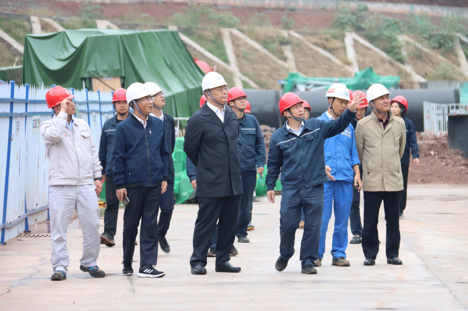 李文志一行深入項(xiàng)目主廠房、余熱鍋爐、輔助生產(chǎn)區(qū)等作業(yè)面實(shí)地查看資陽(yáng)燃?xì)怆娬卷?xiàng)目建設(shè)進(jìn)展情況,并聽取了川投燃電、資陽(yáng)氣電的工作情況匯報(bào)。