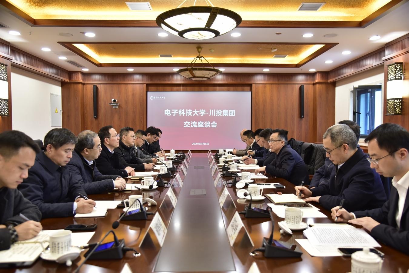 3月6日,川投集團黨委書記、董事長吳曉曦率隊赴電子科技大學(xué)(以下簡稱電子科大)拜訪,與電子科大校長、黨委副書記胡俊座談,雙方就進一步深化校企合作,助推新質(zhì)生產(chǎn)力發(fā)展、加強相關(guān)領(lǐng)域科技研發(fā)、促進產(chǎn)教融合成果轉(zhuǎn)化以及人才培養(yǎng)等方面進行深入會談。電子科大黨委常委、副校長徐紅兵;川投集團黨委副書記、副董事長、總經(jīng)理李文志,財務(wù)總監(jiān)黃勁參加座談。