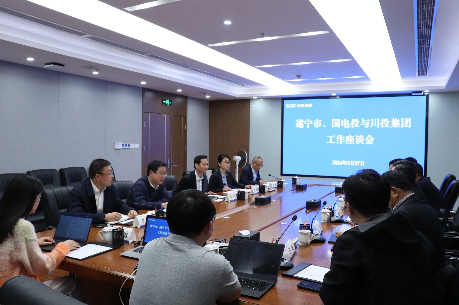3月27日下午,川投集團(tuán)與遂寧市、國(guó)電投新能源公司在川投大廈舉行工作座談會(huì)。遂寧市副市長(zhǎng)許文強(qiáng)、國(guó)電投新能源公司董事長(zhǎng)陳永存出席會(huì)議,集團(tuán)公司副總經(jīng)理張昊出席并主持會(huì)議。