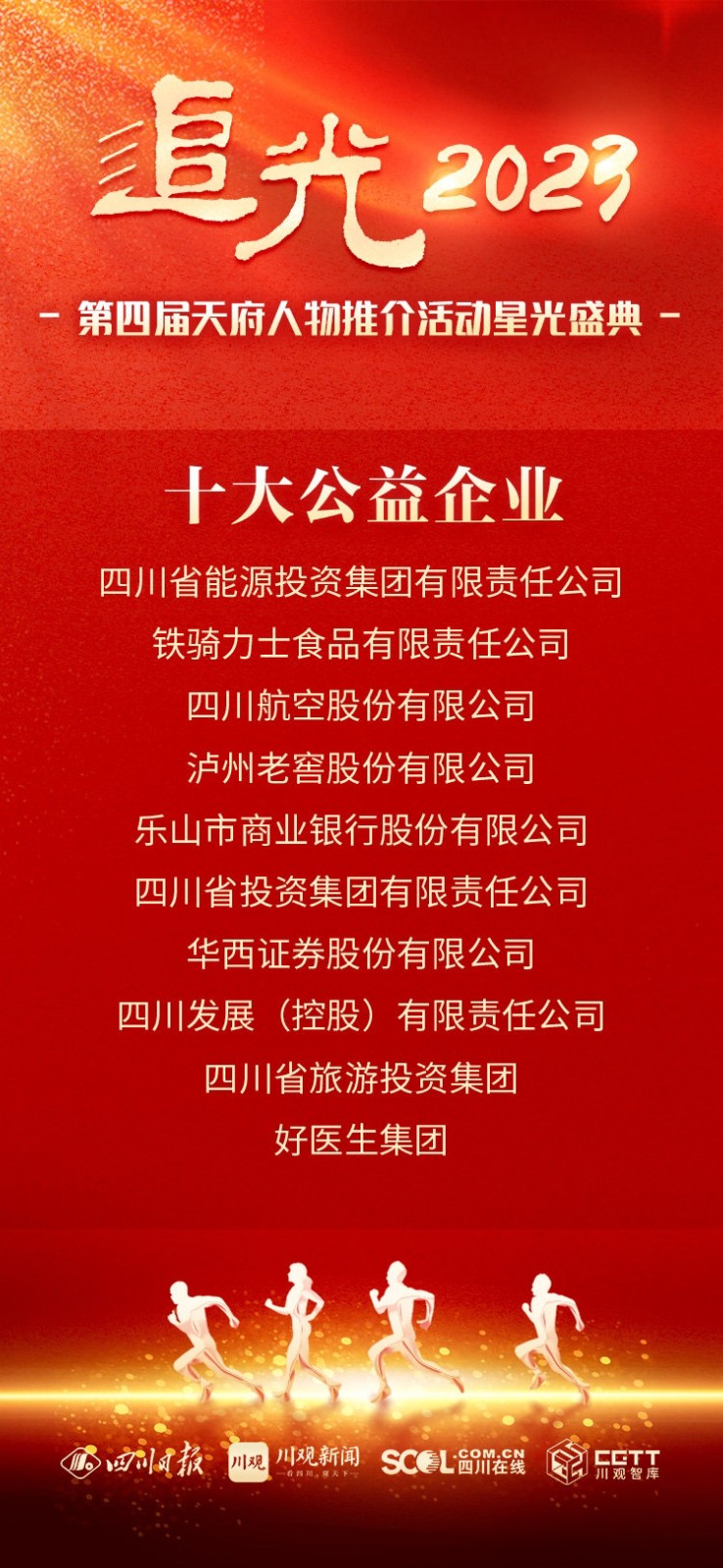 追光2023·第四屆天府人物推介活動(dòng)由四川省精神文明建設(shè)辦公室、四川省政府國(guó)有資產(chǎn)監(jiān)督管理委員會(huì)、四川省工商業(yè)聯(lián)合會(huì)指導(dǎo),四川日?qǐng)?bào)社主辦,全省各縣級(jí)融媒體中心、四川農(nóng)村日?qǐng)?bào)、精神文明報(bào)社聯(lián)動(dòng)推出。本屆追光活動(dòng)于今年1月啟動(dòng),獲得了社會(huì)各界的廣泛好評(píng)和廣大網(wǎng)友的積極參與。