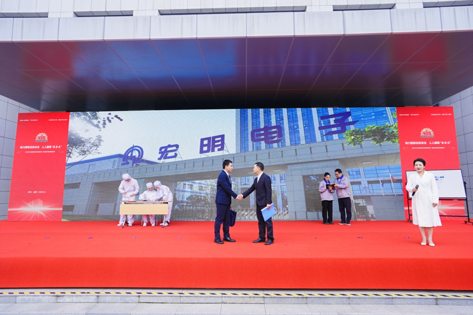2024年4月15日是我國(guó)第9個(gè)全民國(guó)家安全教育日。緊扣2024年國(guó)家安全教育宣傳月“總體國(guó)家安全觀 創(chuàng)新引領(lǐng)10周年”主題,結(jié)合川投信產(chǎn)宏明電子“安全元”文化內(nèi)涵,川投集團(tuán)在宏明電子開展2024年全民國(guó)家安全教育日暨“國(guó)家安全宣傳教育月”主題示范活動(dòng)。省委國(guó)安辦宣教處、龍泉驛區(qū)北干道派出所、川投集團(tuán)相關(guān)部門負(fù)責(zé)人及各所屬公司干部職工代表600余人參加活動(dòng)。