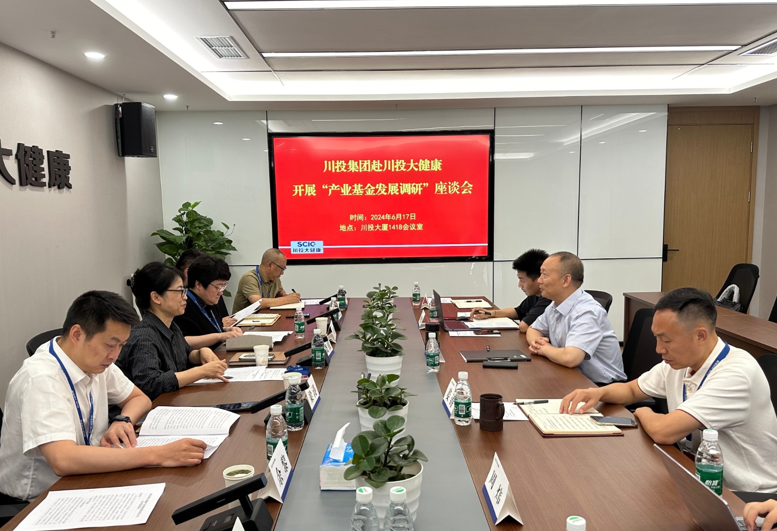 川投集團(tuán)資本運(yùn)營(yíng)部副部長(zhǎng)周思偉;川投資本黨支部書(shū)記、董事長(zhǎng)、總經(jīng)理王靜軼,副總經(jīng)理付強(qiáng);川投君融黨支部書(shū)記、董事長(zhǎng)梁濤,總經(jīng)理余黎;川投大健康產(chǎn)業(yè)集團(tuán)副總經(jīng)理、財(cái)務(wù)總監(jiān)姜濤以及投資發(fā)展部等相關(guān)同志參加了座談。