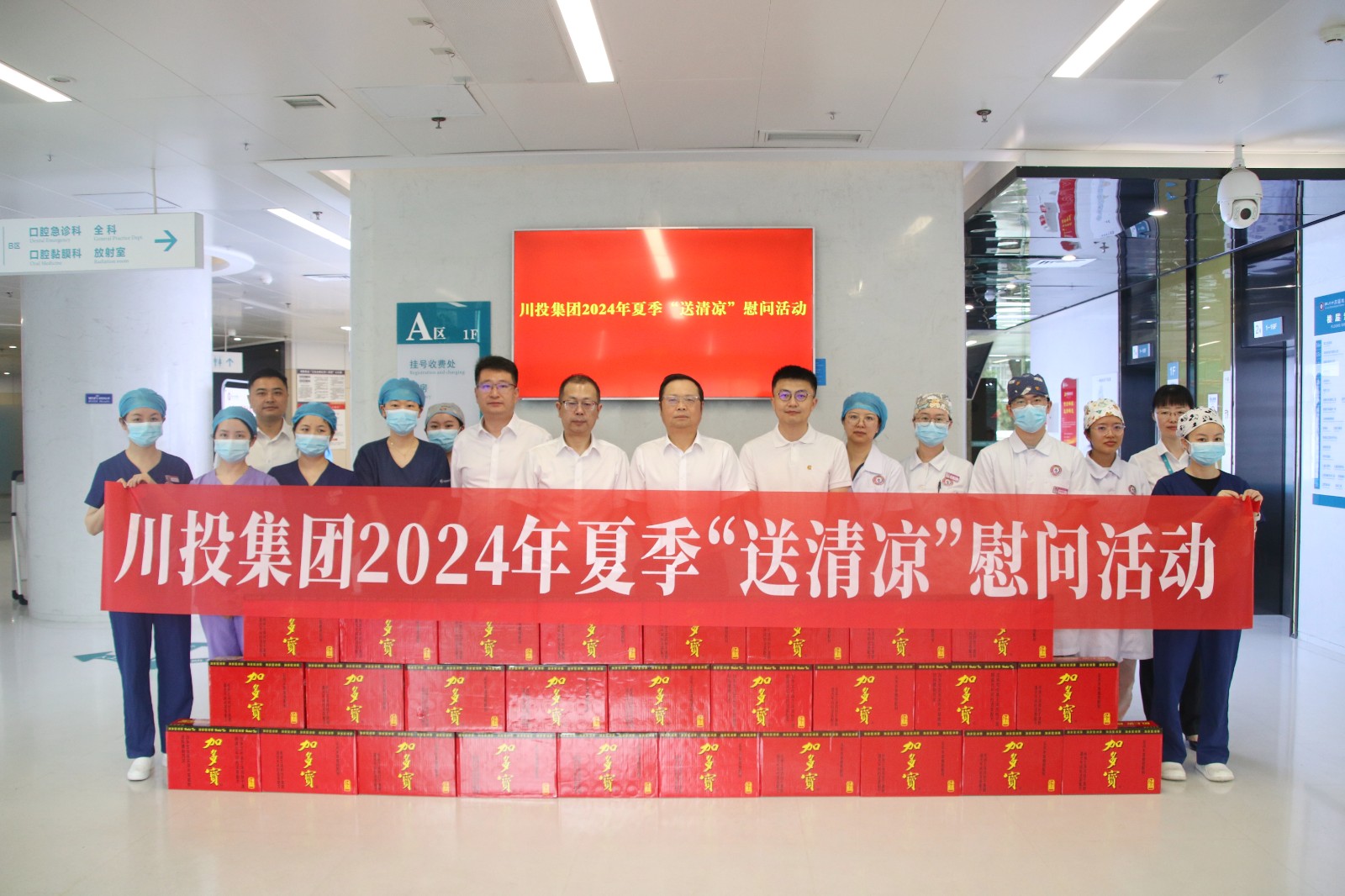 舒勇一行代表川投集團(tuán)看望慰問了四川口腔醫(yī)院堅(jiān)守崗位上的一線工作人員,與職工親切交談,了解工作生活情況,為他們送去了涼茶飲料、防暑藥品等慰問品。