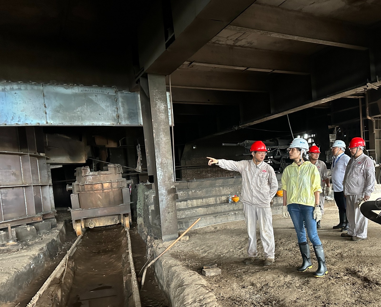抵達(dá)川投峨鐵,朱莉一行即冒雨深入二廠區(qū)西南北三面圍墻倒塌處、二廠冶煉廠房、原料棚、二總降及水泵站等地查看災(zāi)情,詳細(xì)了解了公司“7.18”受災(zāi)面積、受損程度等具體情況,聽取了川投峨鐵公司搶險(xiǎn)復(fù)產(chǎn)工作規(guī)劃。隨后,朱莉代表集團(tuán)黨委看望了在搶險(xiǎn)復(fù)產(chǎn)一線的干部職工,對(duì)他們前期工作的有力有序開展給予肯定,對(duì)他們的辛苦付出表示慰問和感謝,并送上了慰問物資。