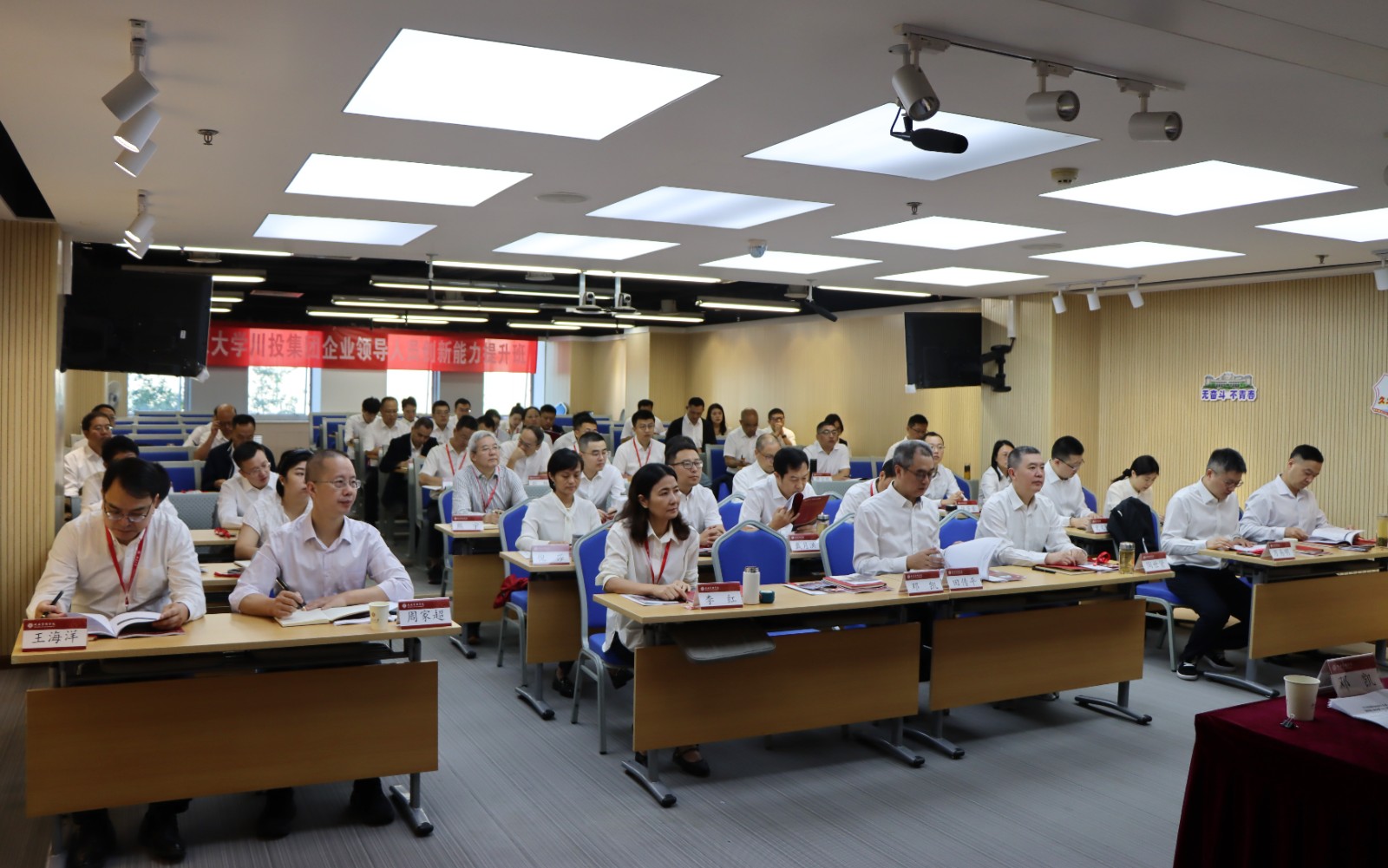 集團(tuán)本部部分總經(jīng)理助理、中層正副職、員工,所屬公司、重要參股公司部分集團(tuán)黨委管理干部及優(yōu)秀企業(yè)領(lǐng)導(dǎo)人員等共計(jì)50余人參加培訓(xùn)。