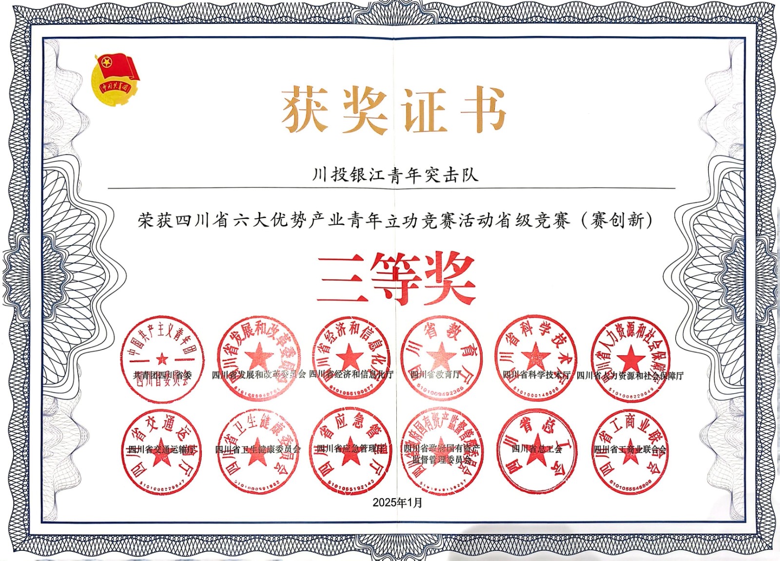 該突擊隊(duì)曾在2024年9月榮獲省企業(yè)團(tuán)工委“國(guó)企心向黨·奮進(jìn)正當(dāng)時(shí)”青年突擊隊(duì)立功競(jìng)賽一等獎(jiǎng)。