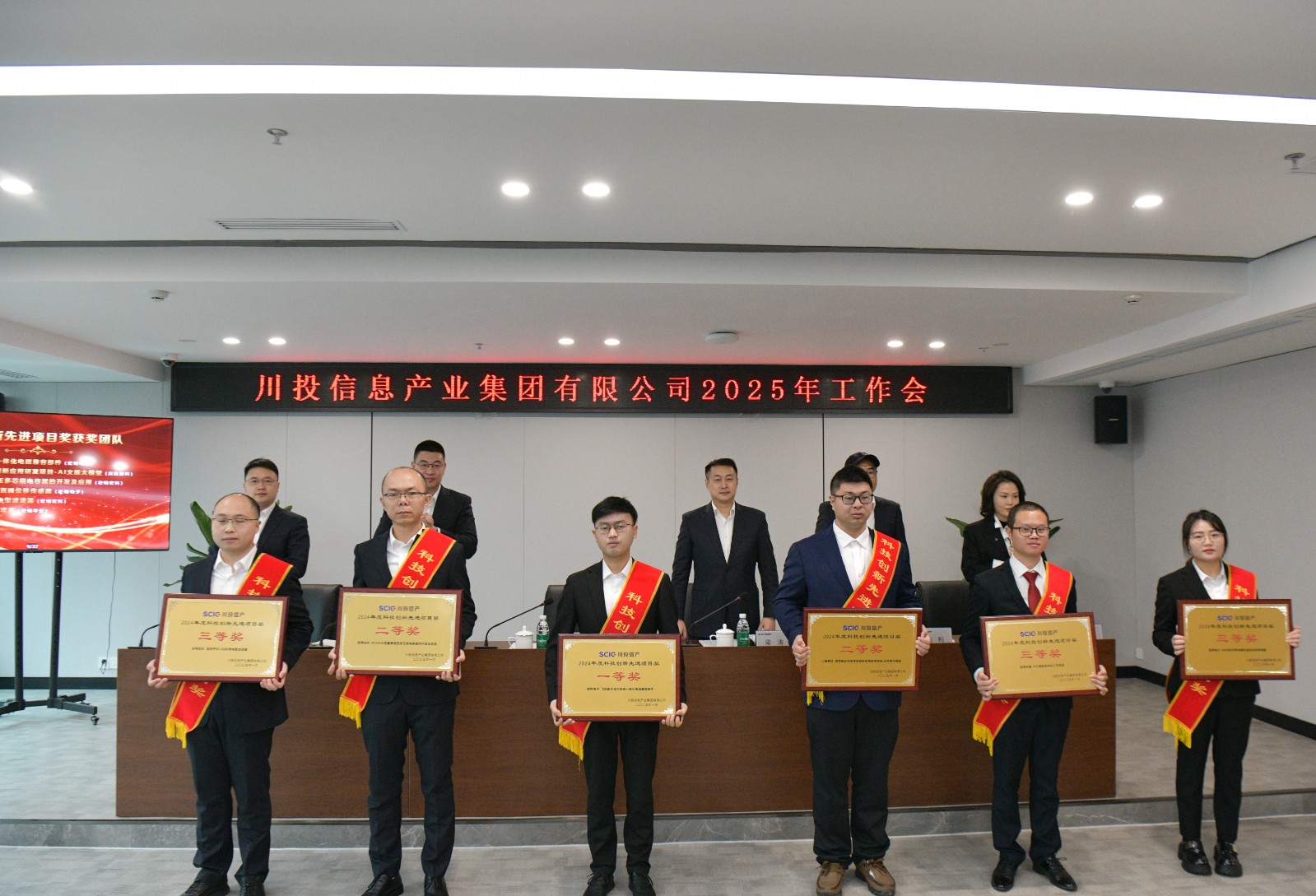 川投信產(chǎn)領(lǐng)導(dǎo)班子成員,部門中層及以上管理人員,本部全體員工,所屬公司主要負(fù)責(zé)人及經(jīng)營管理、科技創(chuàng)新、安全生產(chǎn)分管領(lǐng)導(dǎo),受表彰集體和個人代表共計80余人參加會議。
