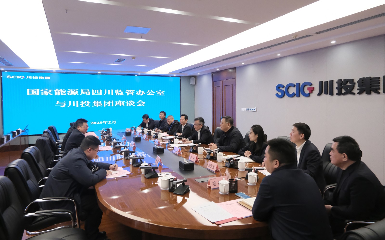 2月5日上午,國家能源局四川監(jiān)管辦公室(以下簡稱“四川能源監(jiān)管辦”)黨組成員、副專員周思楊一行到川投集團走訪,舉行工作座談。集團黨委書記、董事長吳曉曦出席并主持。四川能源監(jiān)管辦黨組成員張毅,集團黨委副書記、副董事長、總經(jīng)理李文志,副總經(jīng)理張昊,黨委委員、職工董事、工會主席朱莉參加。