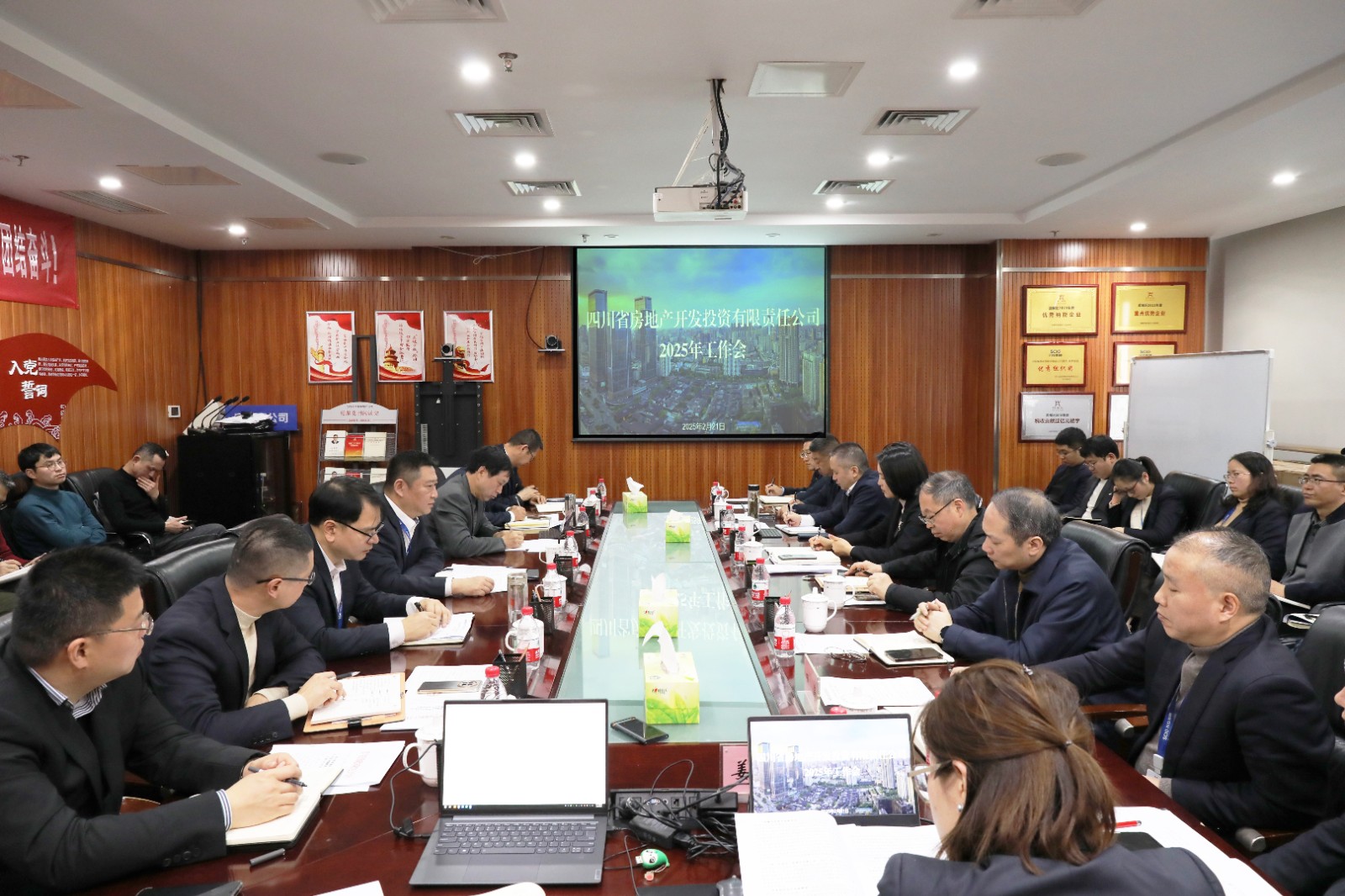 川投房地產(chǎn)領(lǐng)導(dǎo)班子、所屬公司領(lǐng)導(dǎo)班子、本部全體員工參加會(huì)議。