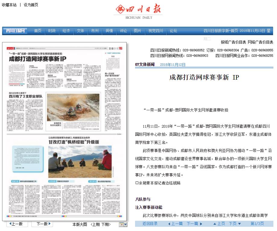 2017年,成都市政府與澳大利亞墨爾本政府進行了訪問交流活動,其間就澳大利亞網(wǎng)球協(xié)會相關(guān)網(wǎng)球賽事落地成都達成合作意向,“一帶一路”成都-澳網(wǎng)國際大學生網(wǎng)球邀請賽就此誕生。