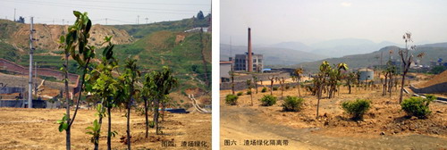 投資2.28萬(wàn)元,在渣場(chǎng)周邊種植橡皮樹120余棵、高山榕100余棵、黃蓮翹300余株,撒播黑梅草草籽20㎏,形成約6米寬的隔離帶。