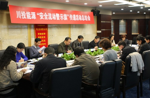 12月10日上午,川投能源“防微杜漸,警鐘長鳴,企業(yè)發(fā)展,安全先行”的安全流動警示旗在公司本部及六個所屬企業(yè)依次傳遞結束后,順利回到了公司傳遞活動總結會現場,為期半年的以安全警示旗幟為載體的2009年度安全教育活動畫上了圓滿的句號。