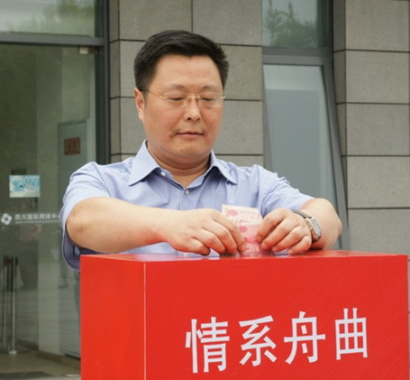 2010年9月13日下午,川網(wǎng)公司開展為甘肅舟曲災(zāi)區(qū)捐款活動。公司執(zhí)行董事李文志、總經(jīng)理糜兵、黨支部書記方述銳、副總經(jīng)理龔帝偉、副總經(jīng)理姜榮、總經(jīng)理助理賈繼躍也全部到場,帶頭為舟曲捐款,獻出愛心。