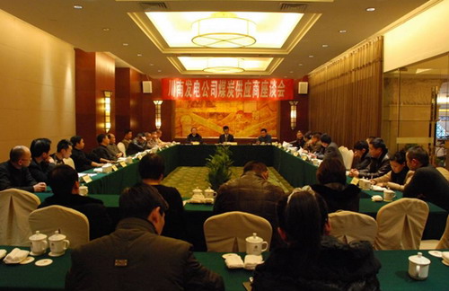 會(huì)上,副總經(jīng)理謝偉平對(duì)公司當(dāng)前的基本情況、2011年煤炭采購(gòu)、客戶信用等級(jí)評(píng)定情況向供煤企業(yè)進(jìn)行了詳細(xì)的介紹,并就當(dāng)前國(guó)際國(guó)內(nèi)煤炭供應(yīng)形勢(shì)進(jìn)行了深入分析,并向客戶宣講了國(guó)家、省、市發(fā)改委關(guān)于加強(qiáng)發(fā)電用煤價(jià)格調(diào)控方面的相關(guān)政策。