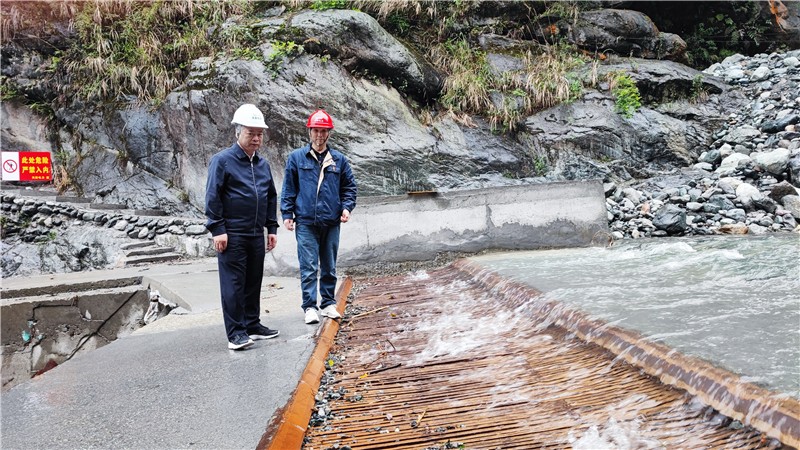 隨后,楊洪一行來到回龍溝底格欄柵壩取水口,檢查水毀工程修復(fù)和生態(tài)流量下泄情況。告誡值班人員加強(qiáng)巡視檢查,禁止游客進(jìn)入生產(chǎn)場所,嚴(yán)防人身傷害。