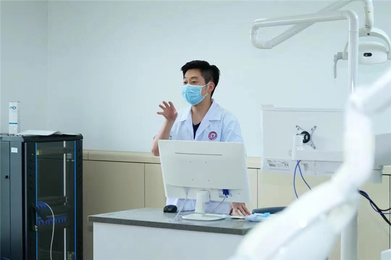 在實踐環(huán)節(jié),蔣禮醫(yī)生利用3D口內(nèi)掃描儀與同學(xué)們進(jìn)行了互動體驗,并在虛擬仿真口腔技能訓(xùn)練機(jī)上實踐操作,用最新的教育教學(xué)手段,讓同學(xué)們對口腔醫(yī)學(xué)有了全新的認(rèn)識。