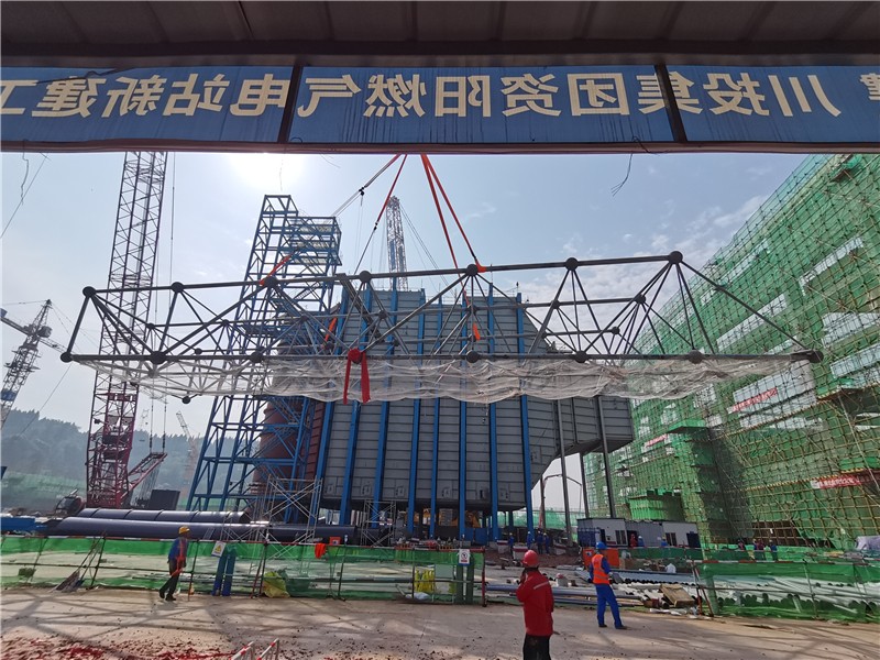 2023年6月9日8時18分,資陽燃氣電站主廠屋面網(wǎng)架開始吊裝。