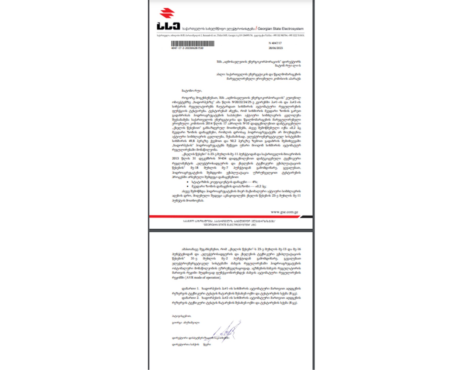 6月28日,公司收到GSE簽發(fā)正式函件,且已同步抄送當(dāng)?shù)乇O(jiān)管機(jī)構(gòu)格魯吉亞能源協(xié)調(diào)委員會(GNERC),確認(rèn)兩臺機(jī)組均滿足電網(wǎng)要求的自動頻率調(diào)節(jié)功能,機(jī)組獲得最大有效容量的時(shí)間也符合格魯吉亞《電網(wǎng)法》第23條第11款要求,這是電站在合規(guī)運(yùn)營上邁出的堅(jiān)實(shí)一步。