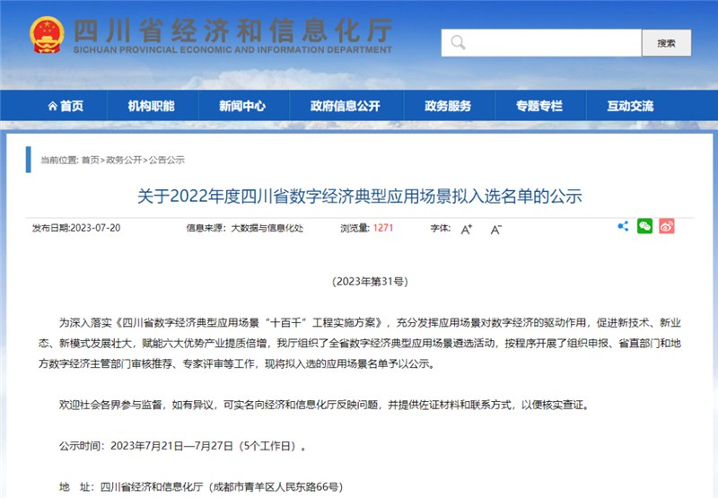 根據(jù)《四川省數(shù)字經(jīng)濟(jì)典型應(yīng)用場景“十百千”工程實施方案》工作要求,四川省經(jīng)濟(jì)和信息化廳組織開展了本次數(shù)字經(jīng)濟(jì)典型應(yīng)用場景遴選活動,并面向全省征集相關(guān)產(chǎn)品、技術(shù)和解決方案,經(jīng)組織申報、主管部門審核推薦、專家評審后,最終產(chǎn)生該擬入選名單。
