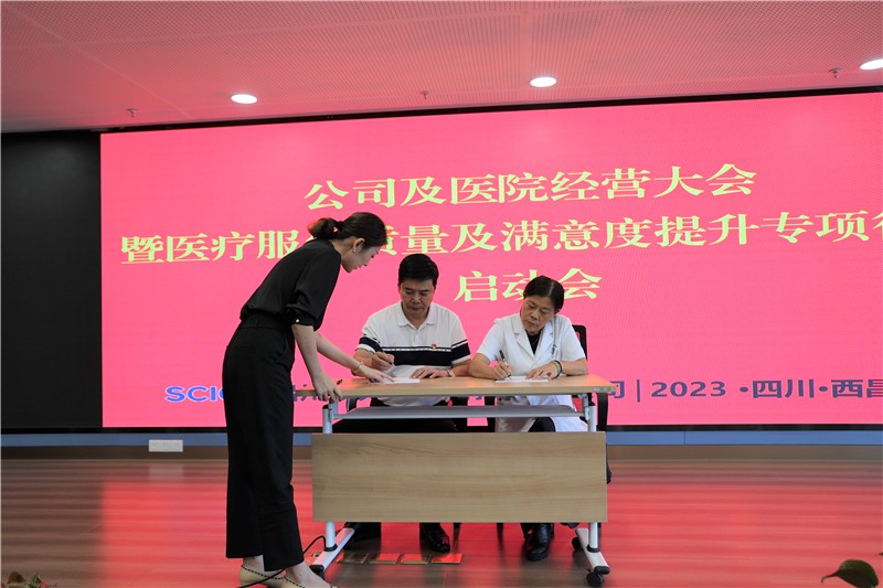 為進(jìn)一步提升患者就醫(yī)滿意度,優(yōu)化服務(wù)流程,提高醫(yī)療質(zhì)量,在醫(yī)療服務(wù)質(zhì)量和患者滿意度雙提升上實(shí)現(xiàn)新突破,2023年8月23日,公司組織召開“經(jīng)營大會暨醫(yī)療服務(wù)質(zhì)量及滿意度提升專項(xiàng)行動(dòng)啟動(dòng)會”,公司及醫(yī)院領(lǐng)導(dǎo)、除值班外的全體員工參會。
