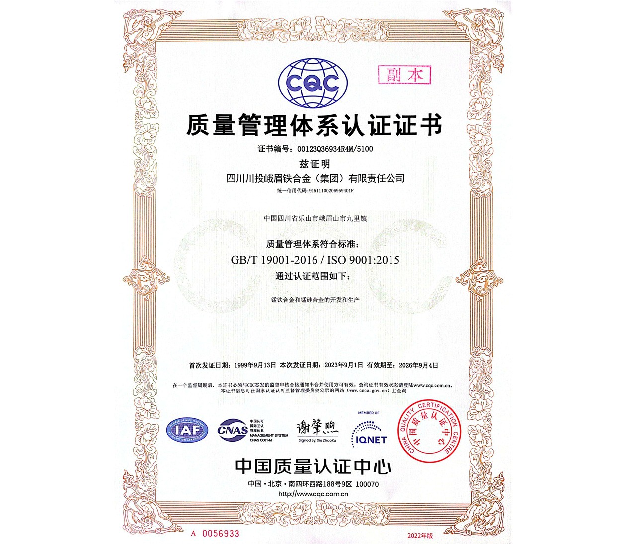 近日,川投峨鐵公司順利通過了2023年ISO9001質(zhì)量管理體系再認(rèn)證審核。