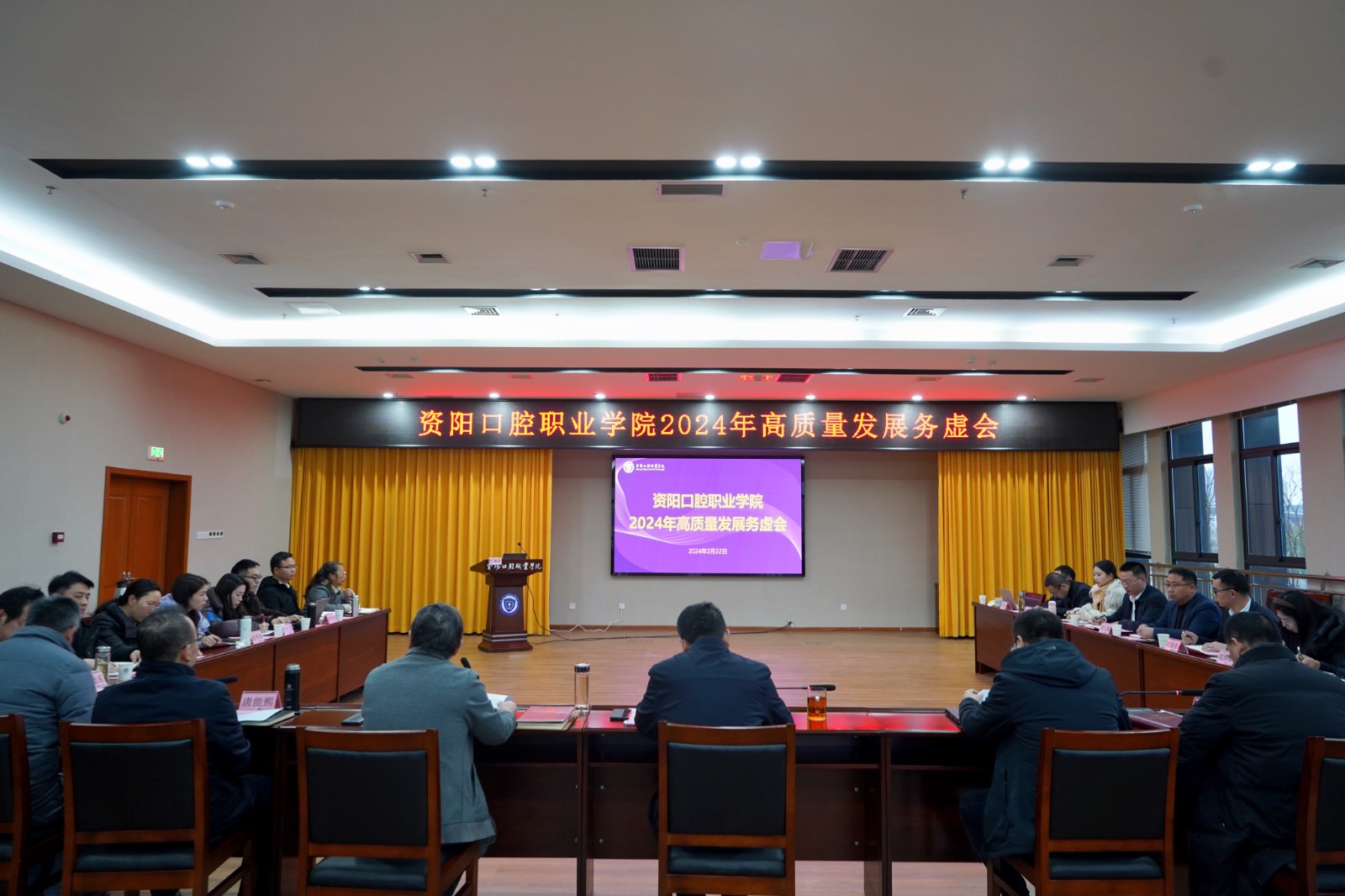 2月22日,資陽口腔學(xué)院召開2024年高質(zhì)量發(fā)展務(wù)虛會,深入分析研判當(dāng)前發(fā)展形勢,謀劃部署高質(zhì)量發(fā)展思路舉措,全面凝聚共識,增強(qiáng)發(fā)展動能。學(xué)院在家領(lǐng)導(dǎo)班子成員出席,各部門負(fù)責(zé)人參會,學(xué)院院長萬呼春主持會議。