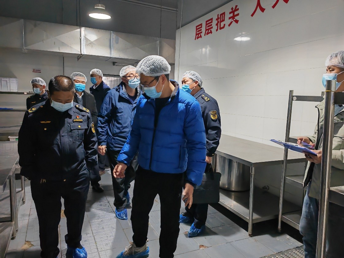 為全力保障師生“舌尖安全”,川渝市場監(jiān)管局聯(lián)合開展校園食品安全交叉檢查。2月28日,重慶萬州區(qū)市場監(jiān)管局副局長張松一行來校檢查食品安全,資陽市市場監(jiān)管局副局長秦廷才,學(xué)院副院長夏余建及相關(guān)工作人員陪同檢查。