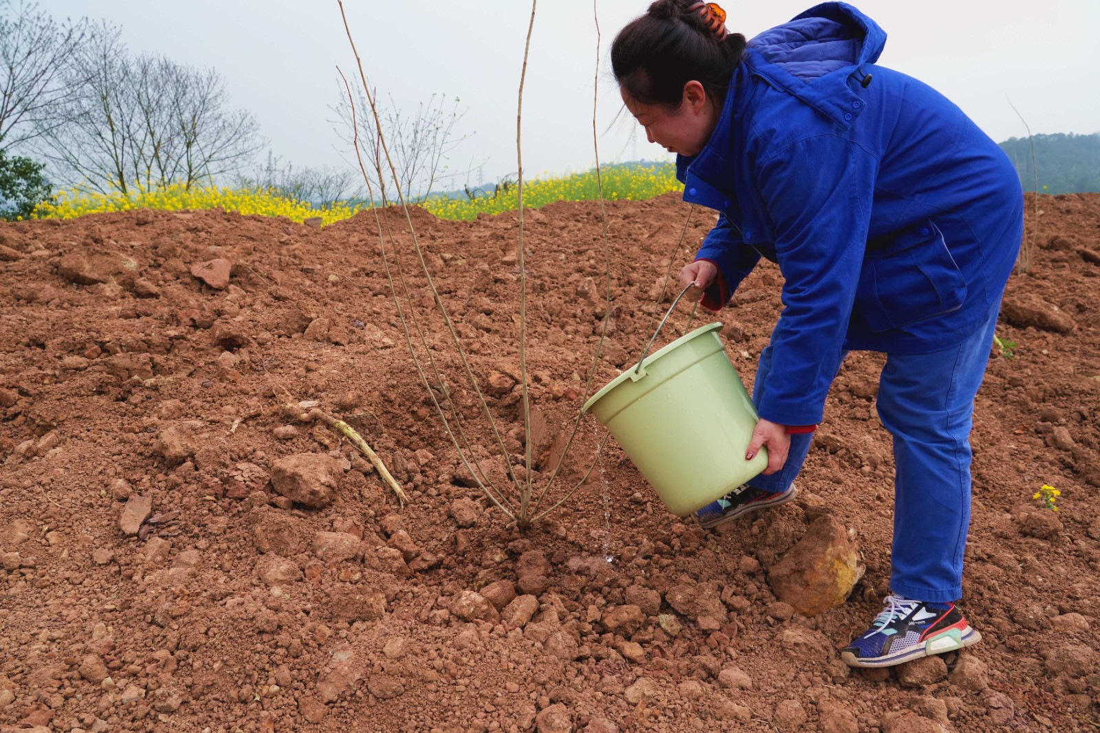 活動現(xiàn)場,志愿者們揮鍬鏟土、扶苗植樹、提水澆灌,大家密切配合、干勁十足,在春日的陽光下盡情揮灑汗水,現(xiàn)場一派熱火朝天的景象。經(jīng)過大家的辛勤勞動,一棵棵樹苗被栽下,一片片土地?zé)òl(fā)新顏,大地上又增添了一抹新綠,孕育著勃勃生機。