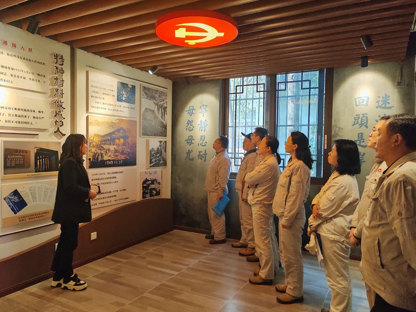 在陳俊卿紀(jì)念館,全體黨員聆聽了峨眉籍紅巖烈士陳俊卿的生平事跡介紹,觀看了陳列室館藏文獻(xiàn)、英雄事跡瞻仰墻、渣滓洞模擬刑訊室等,感受陳俊卿烈士不畏艱難、勇往直前、不怕犧牲的革命精神。隨后在“宣誓墻”前重溫了入黨誓詞。