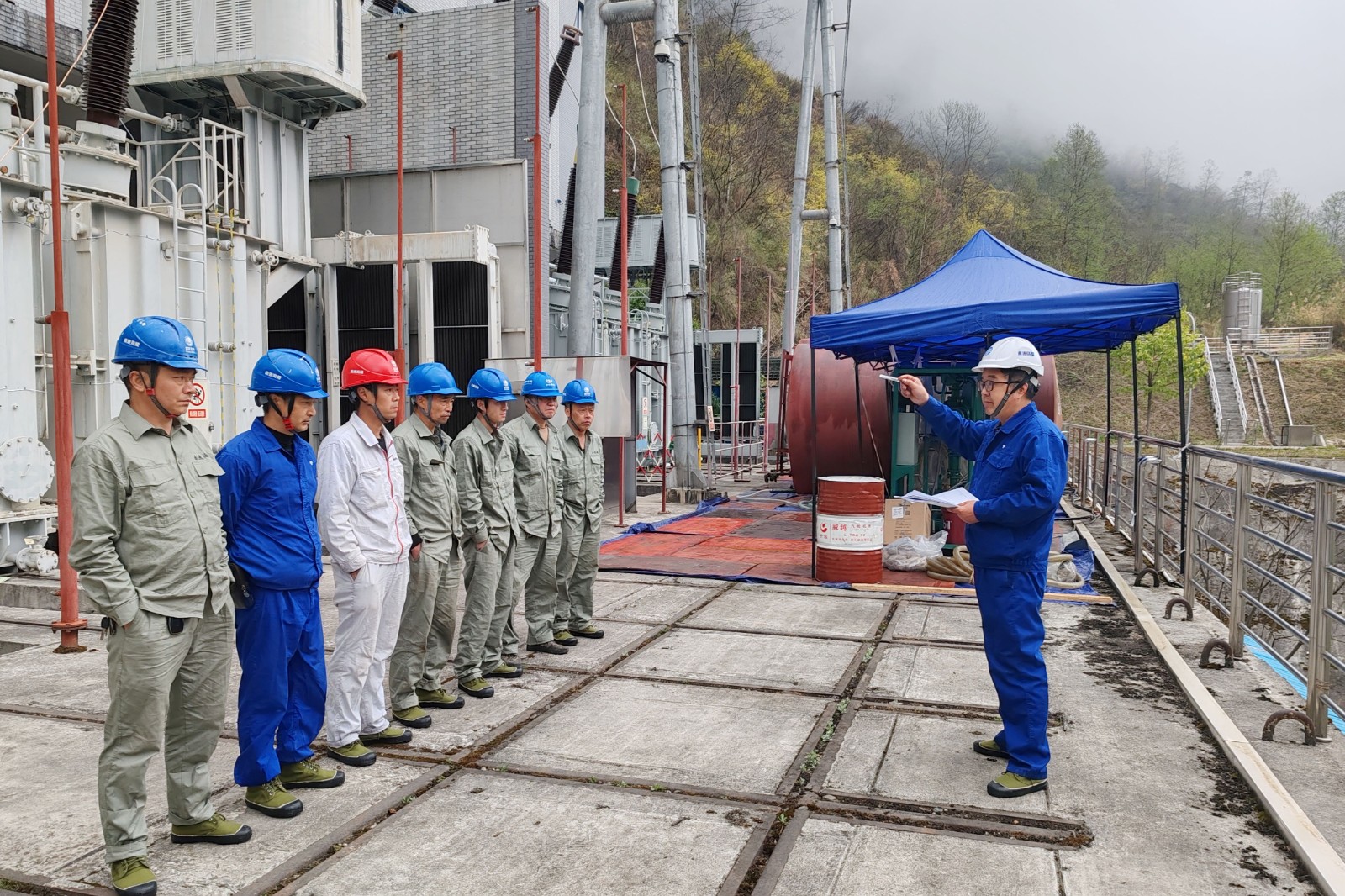受田灣河流域小氣候影響,金窩電站天氣狀況變化無常。為順利完成本次主變大修工作,檢修開始前,田灣河公司組織專業(yè)技術(shù)人員詳細審核檢修方案及三措,根據(jù)現(xiàn)場實際情況,科學(xué)合理安排工期;檢修期間,監(jiān)理組加強協(xié)調(diào)統(tǒng)籌,全程緊密配合,嚴(yán)把安全、質(zhì)量、進度關(guān),確保了大修工作安全高效推進。