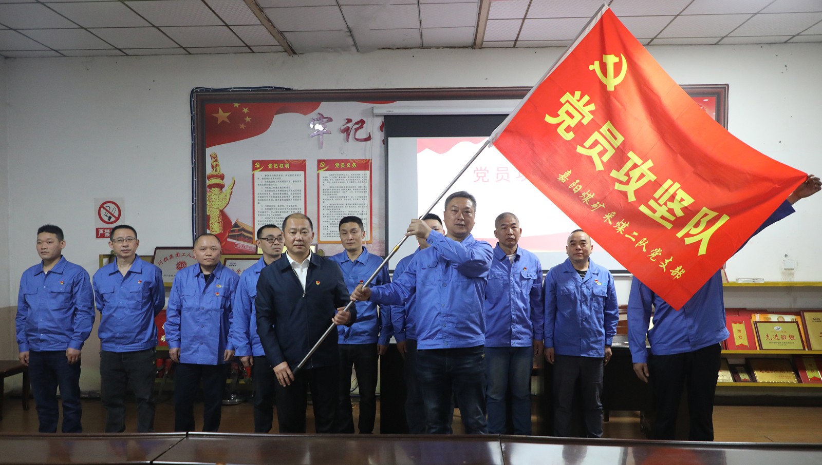 4月25日,嘉陽煤礦采煤二隊(duì)黨支部在黨群活動(dòng)室舉行“黨員攻堅(jiān)隊(duì)”授旗儀式,公司黨委副書記、總經(jīng)理范勤英授予黨支部“黨員攻堅(jiān)隊(duì)”旗幟,鼓勵(lì)黨員干部帶領(lǐng)全隊(duì)職工緊跟新質(zhì)生產(chǎn)力發(fā)展步伐,進(jìn)一步挖掘智能化綜采優(yōu)勢,確保生產(chǎn)安全高效。