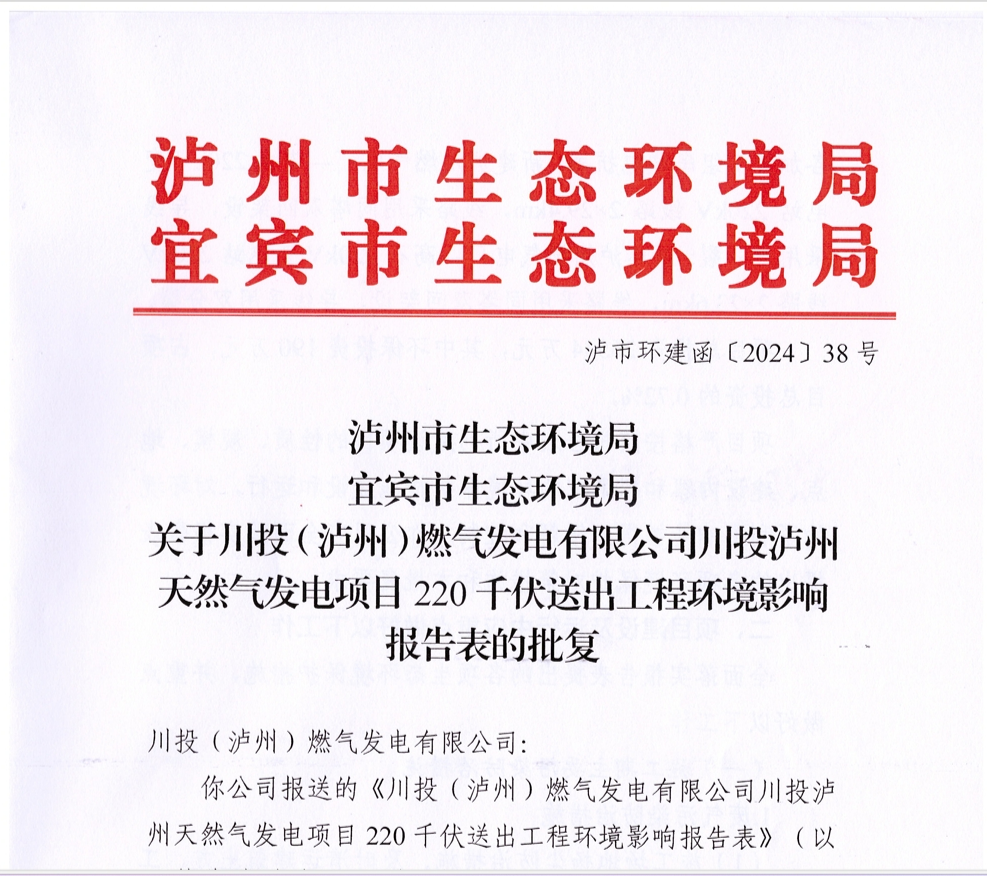 環(huán)評批復的獲得,標志著項目220千伏送出工程取得了環(huán)保主管部門頒發(fā)的綠色通行證,為該工程“三同時”建設奠定了扎實的基礎。下一步,公司將以更加飽滿的熱情、更加昂揚的斗志全力推進220千伏送出工程建設,為川投瀘州天然氣發(fā)電項目按期投產提供強大助力。