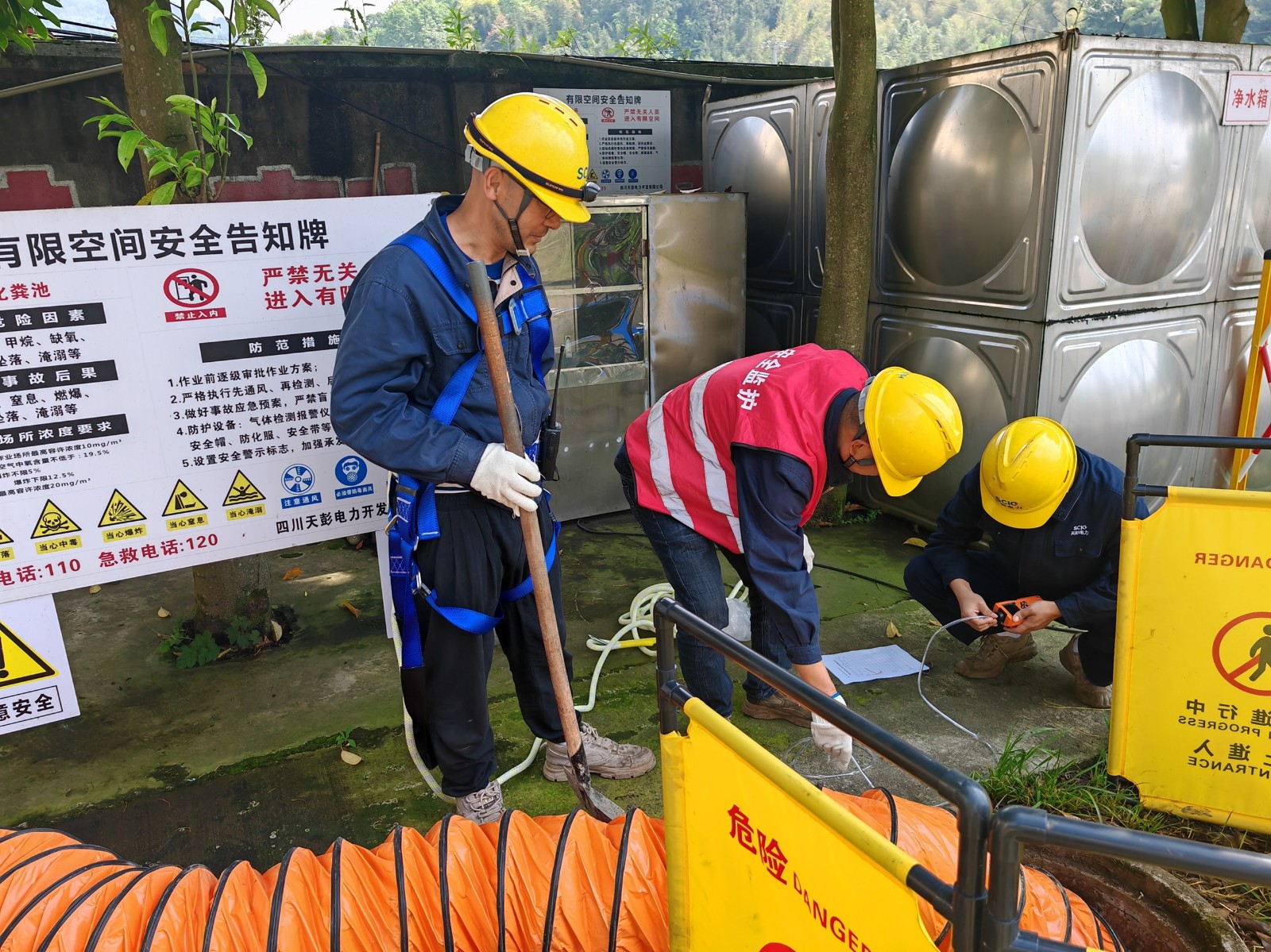 為深刻汲取近期各地有限空間安全事故教訓(xùn),嚴(yán)格落實(shí)有限空間作業(yè)安全管理“八必須、七不準(zhǔn)”要求,提升員工應(yīng)對(duì)有限空間作業(yè)突發(fā)事件應(yīng)急處置能力,5月9日,川投能源所屬天彭電力組織開(kāi)展了2024年度有限空間作業(yè)安全專項(xiàng)培訓(xùn)和應(yīng)急演練。
