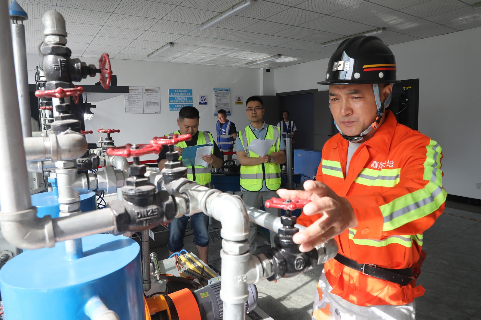 在電鉗工考場,學(xué)員們嚴格按照標準流程執(zhí)行操作,展示了良好的實操技能。在瓦斯抽采工考場,學(xué)員們在回答了考評員的基本問題后,進行了瓦斯抽采準備、設(shè)備啟動和瓦斯抽采鉆孔等系列操作,檢驗了學(xué)員的真實水平。