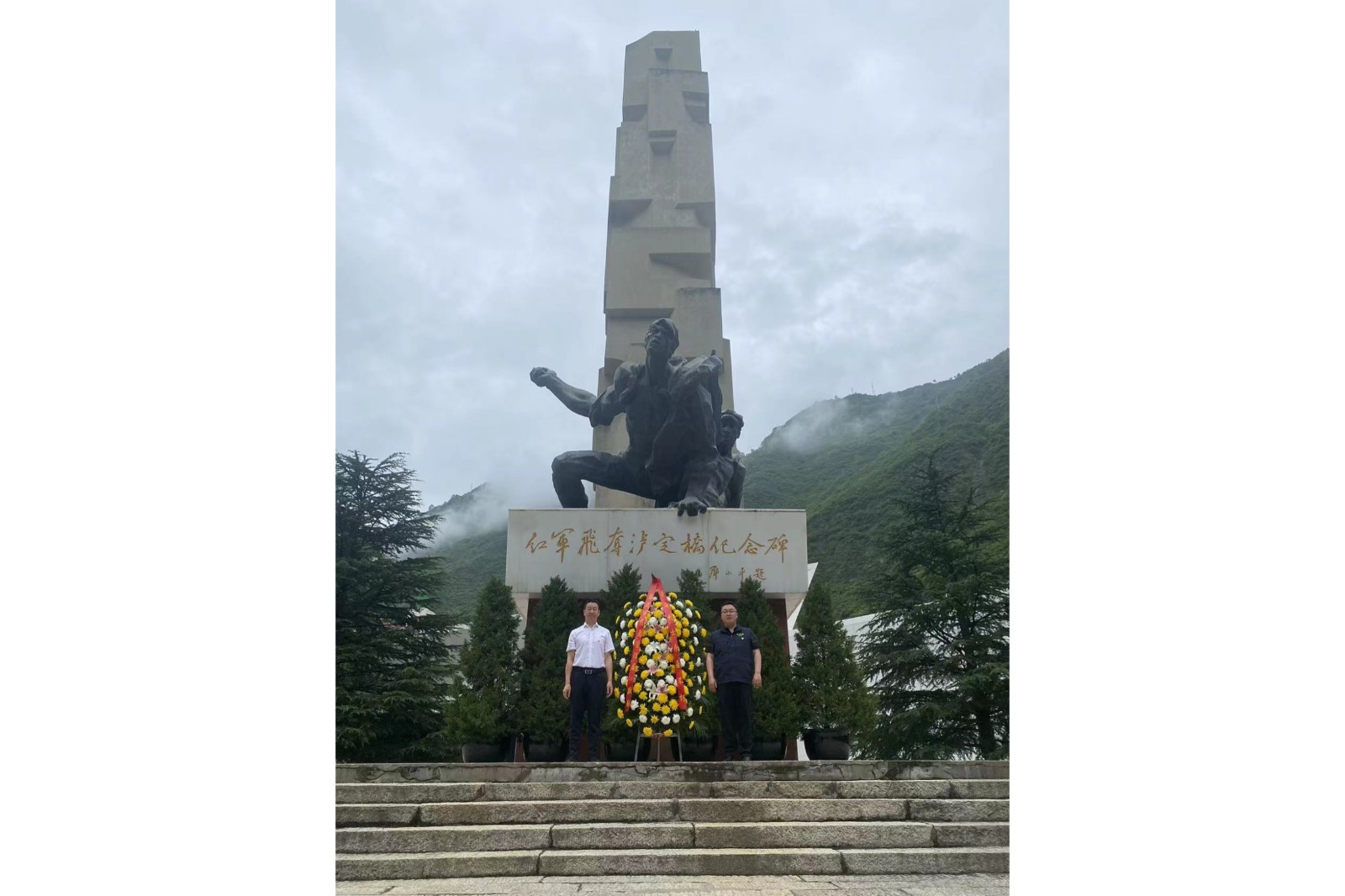 活動首先由公司副總經(jīng)理伍超與康定市應急管理局黨支部副書記、副局長王兆年向“紅軍飛奪瀘定橋紀念碑”敬獻了花圈。王兆年作為領(lǐng)誓人帶領(lǐng)全體參與活動黨員共同重溫入黨誓詞。雙方參與活動人員在講解員的帶領(lǐng)下參觀了“紅軍飛奪瀘定橋紀念館”,重溫了飛奪瀘定橋的光榮歷史。